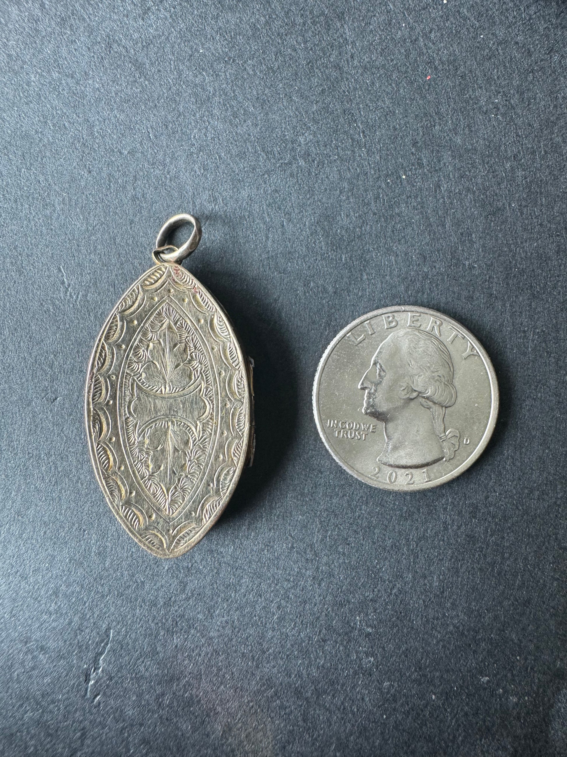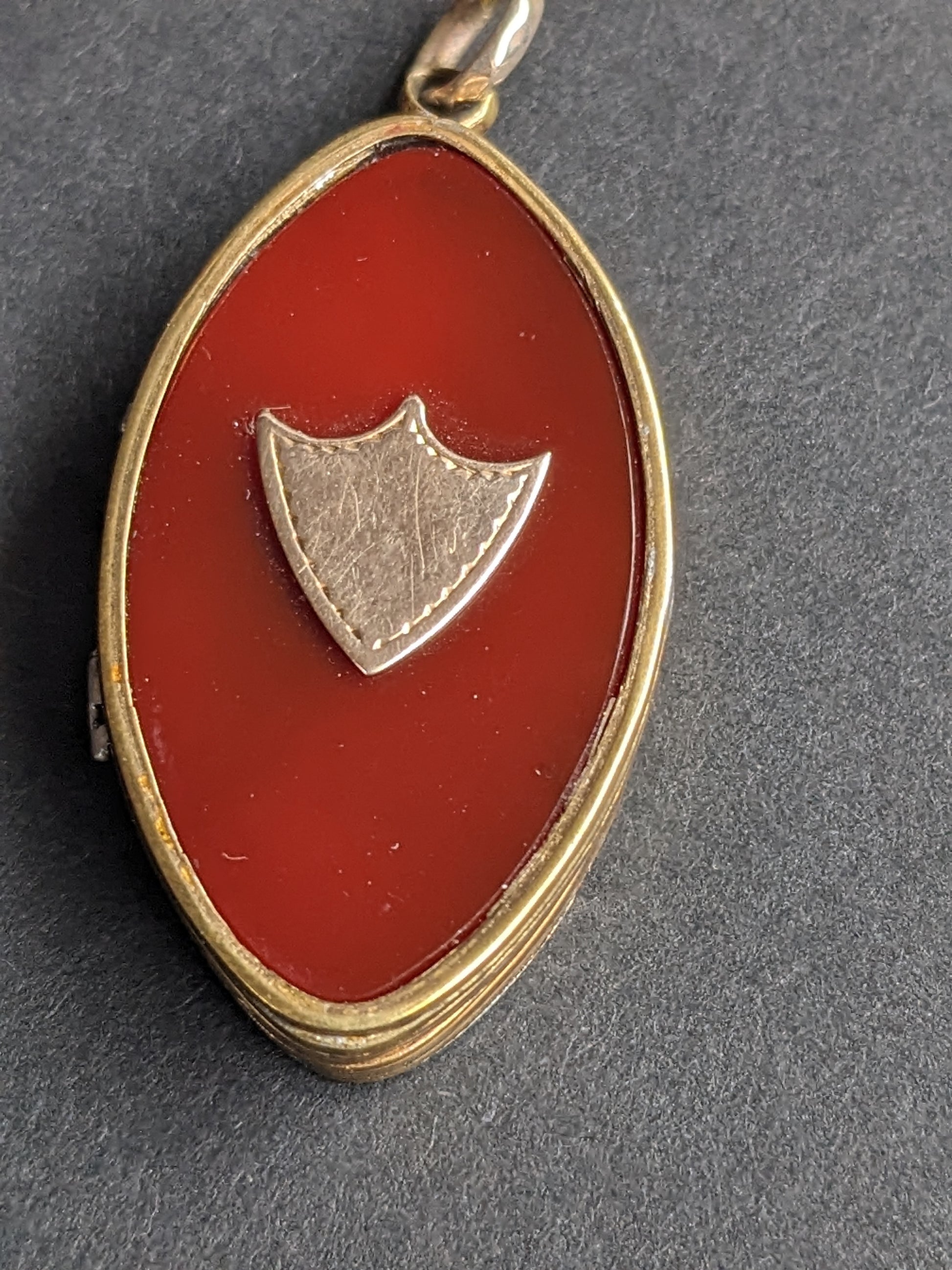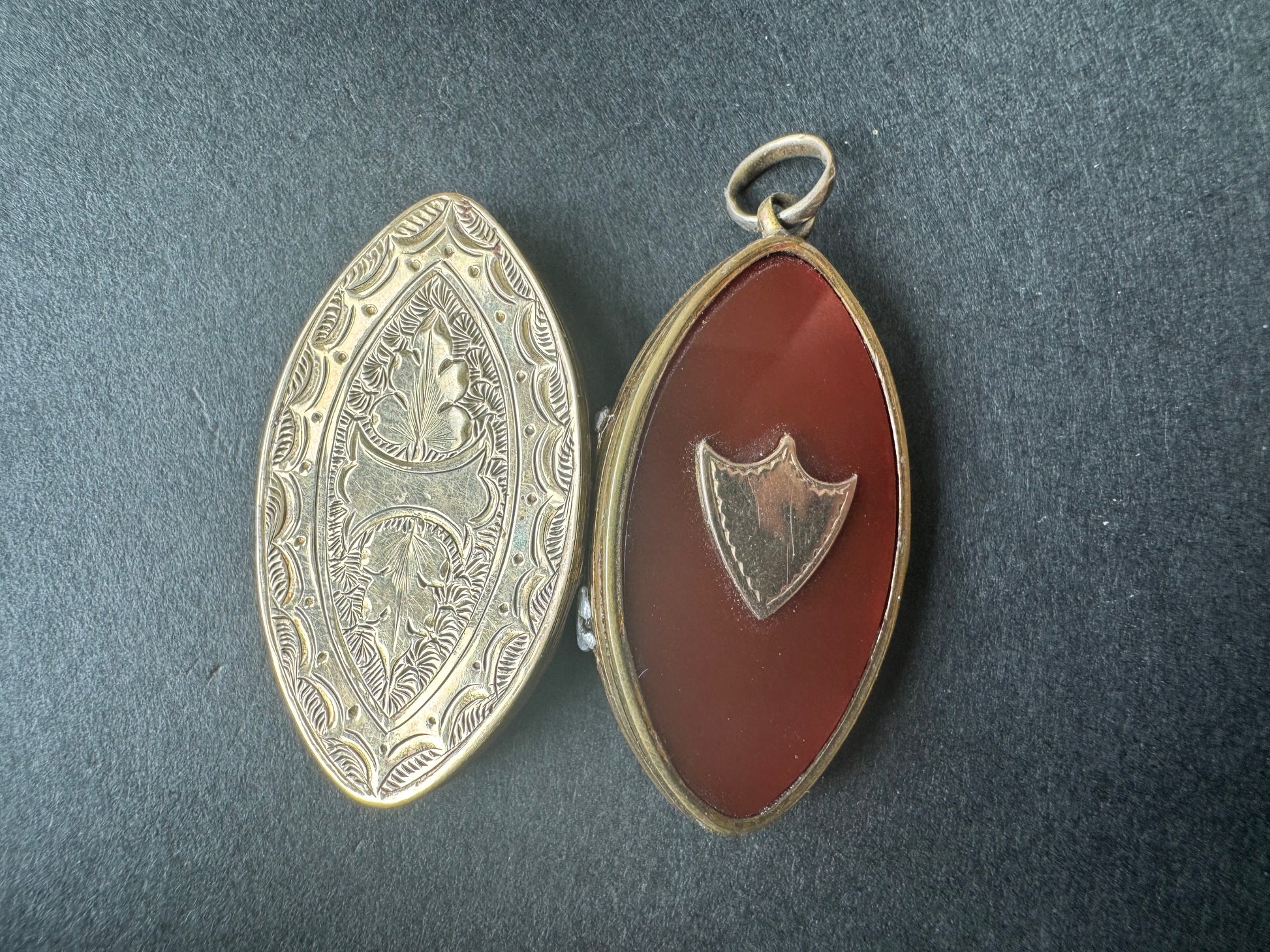 Carnelian and Gold Marquis Shaped Engraved Locket with Shield