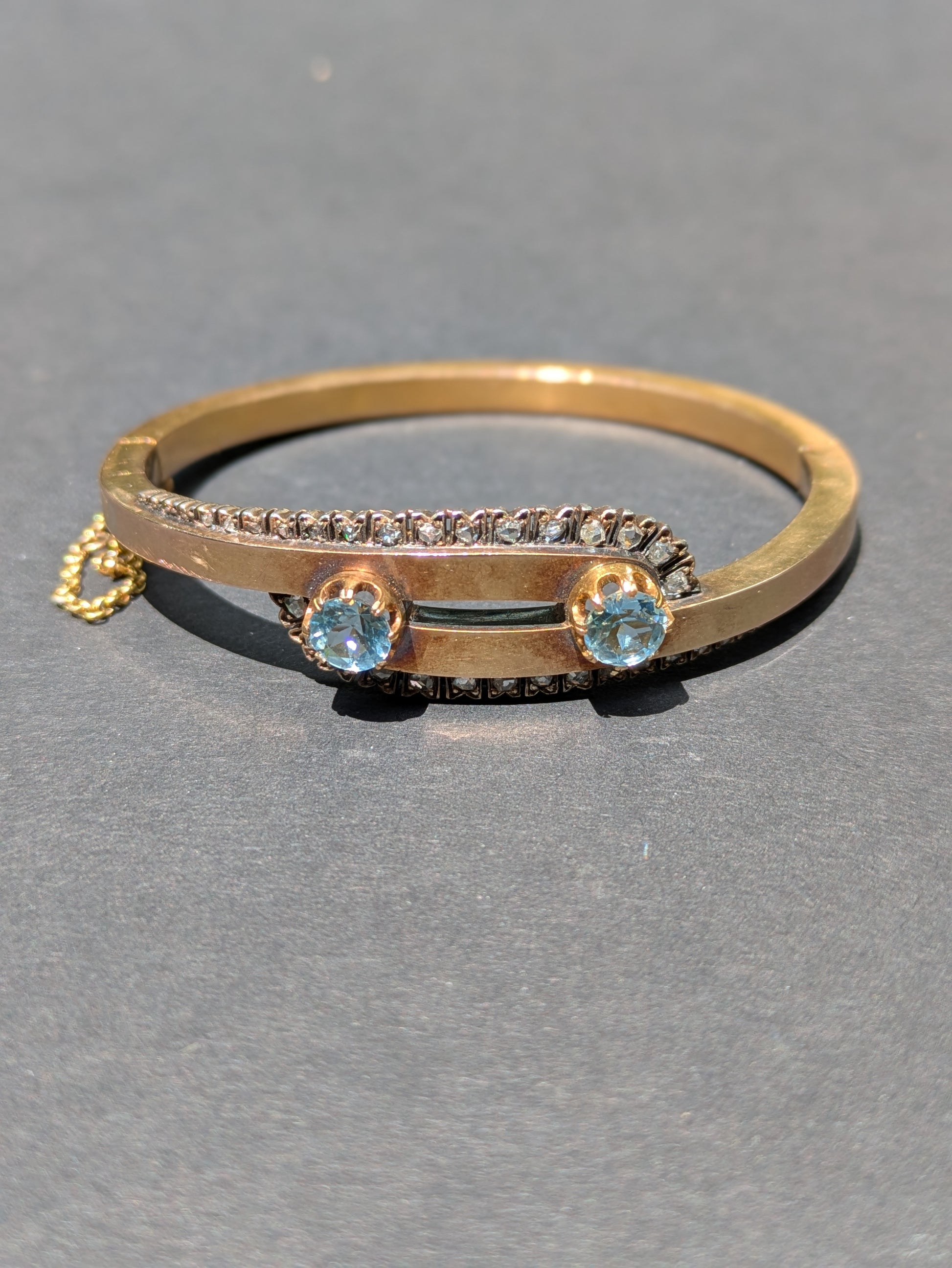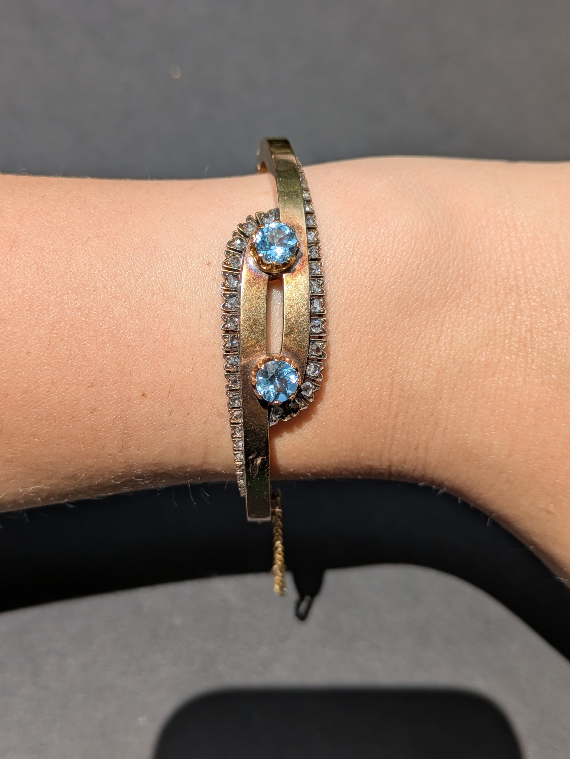 French 18k Aquamarine and Diamond Hallmark Bracelet