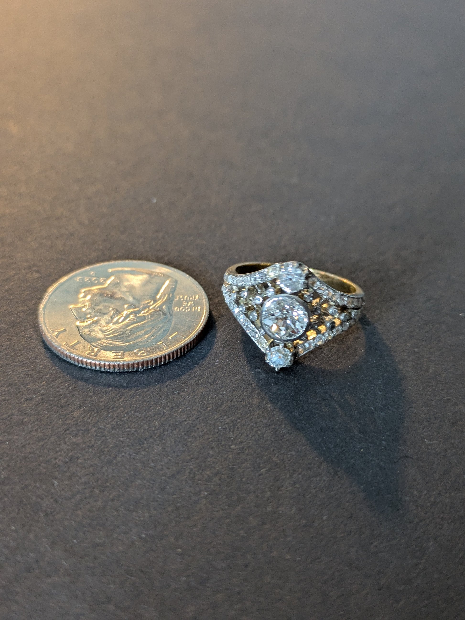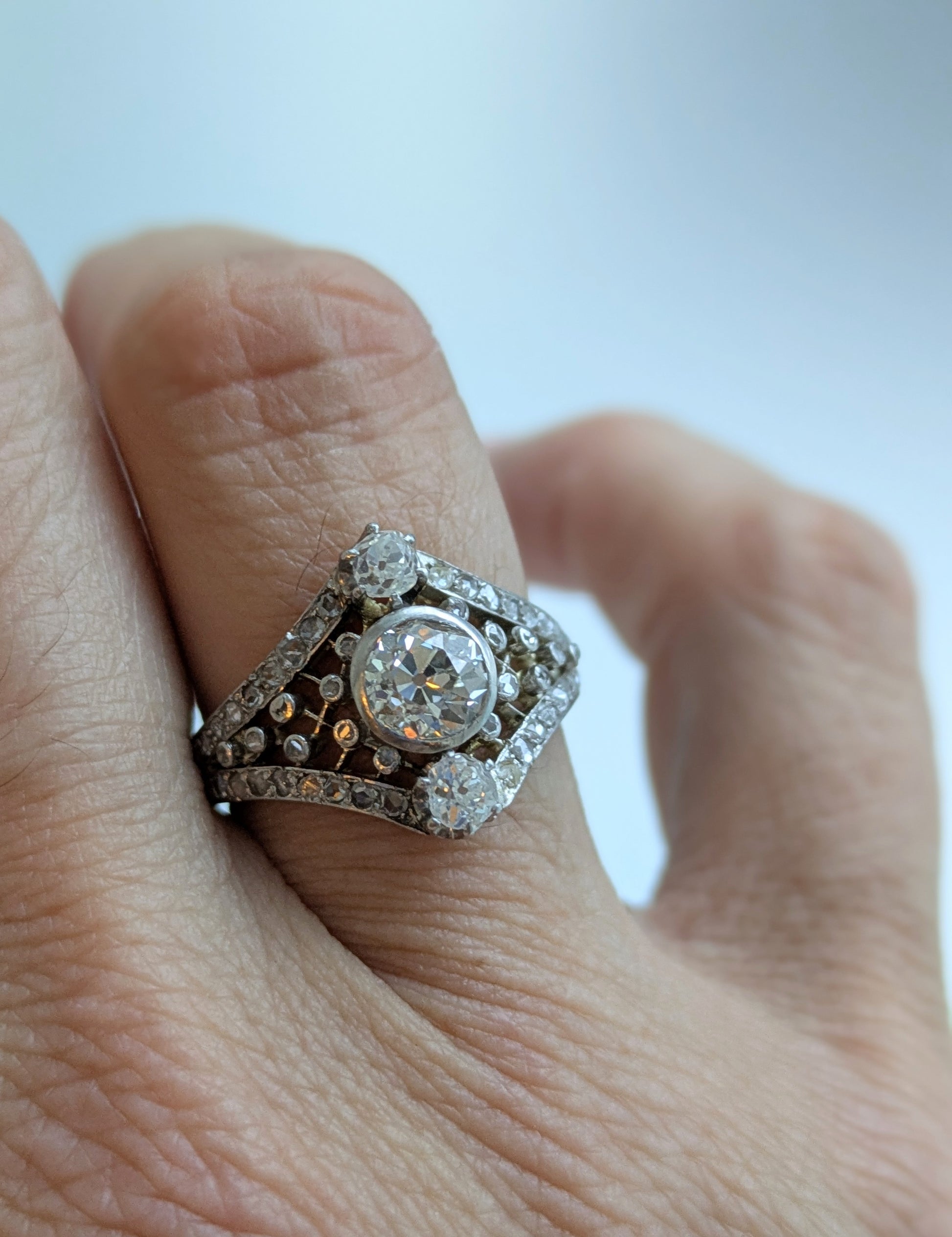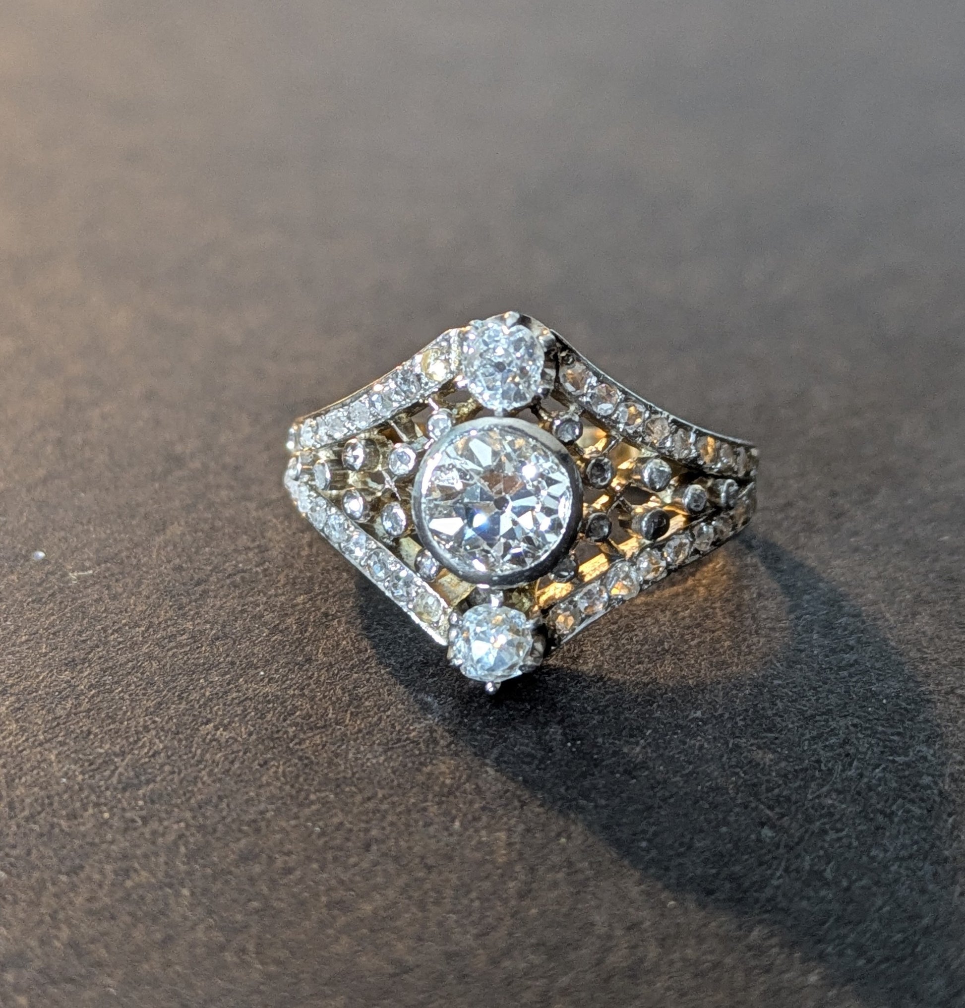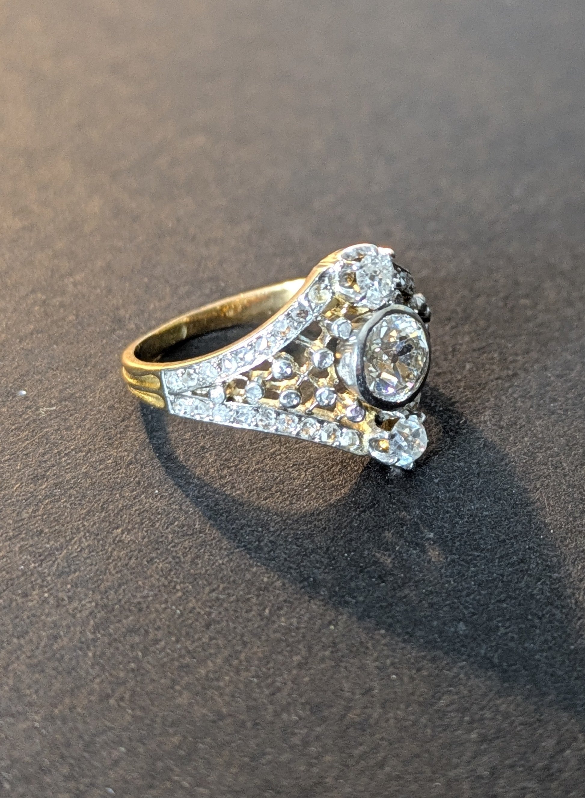 French Art Nouveau Diamond Ring 18kt