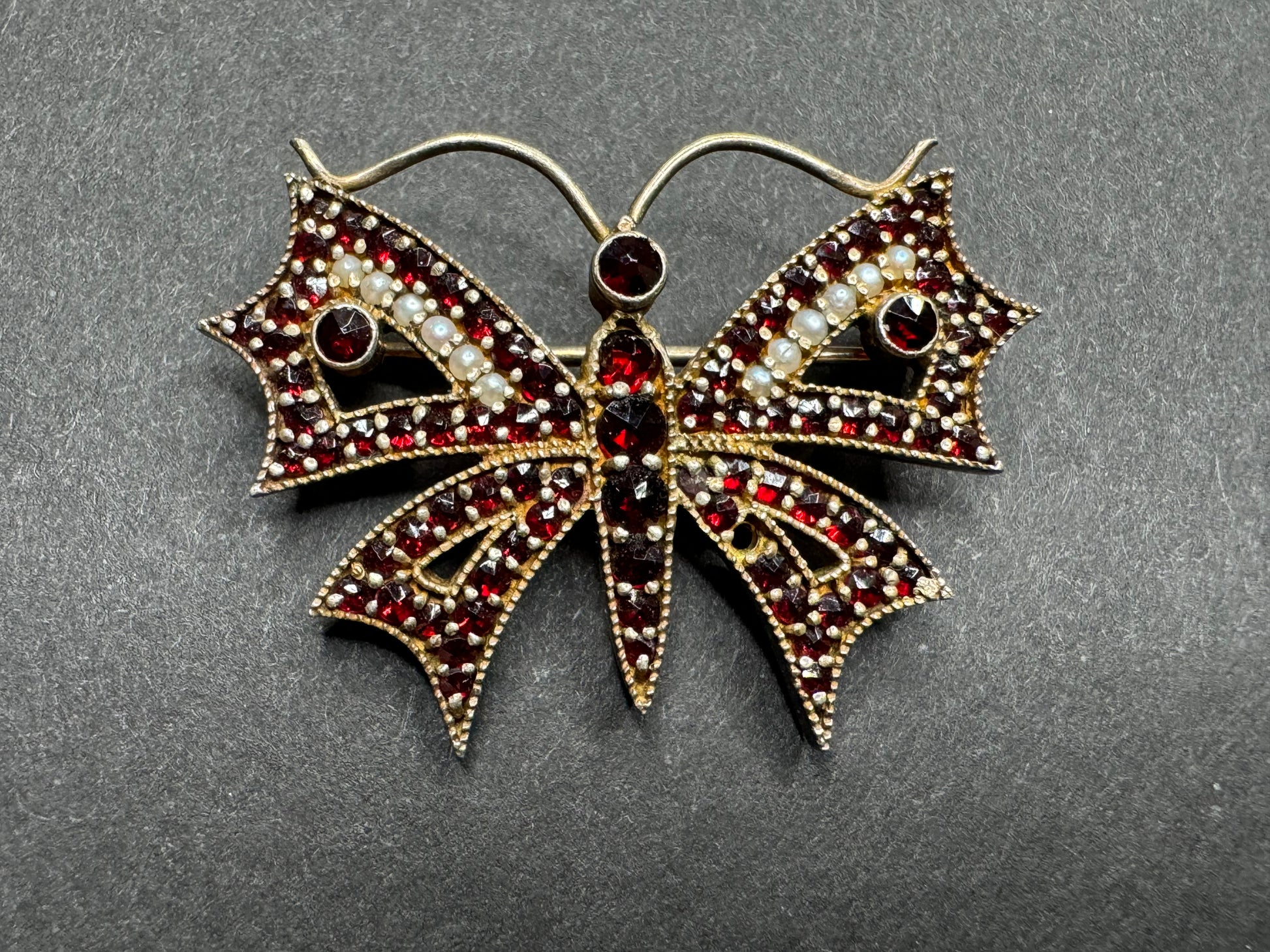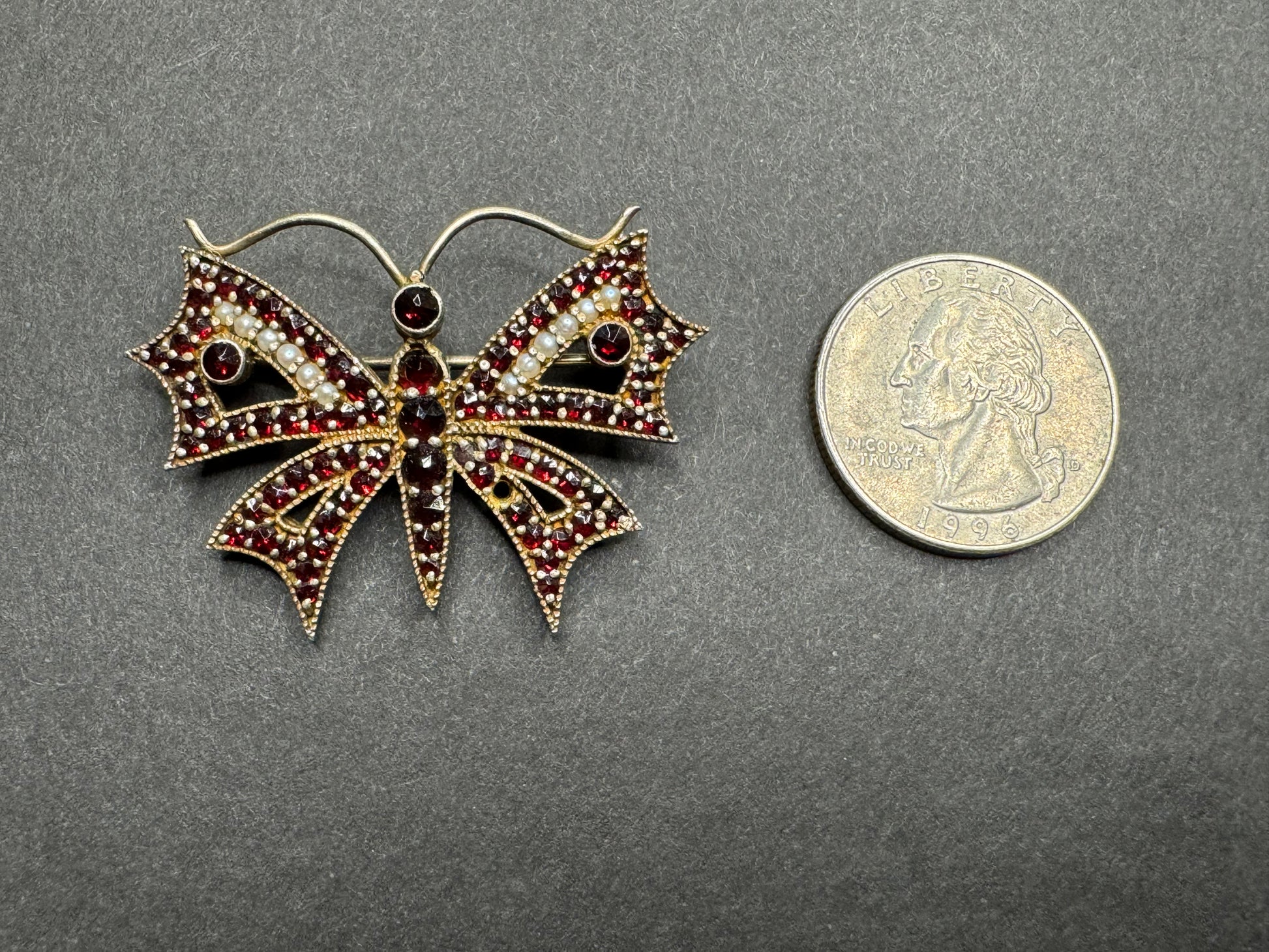 Garnet and Pearl Butterfly Brooch Circa 1930