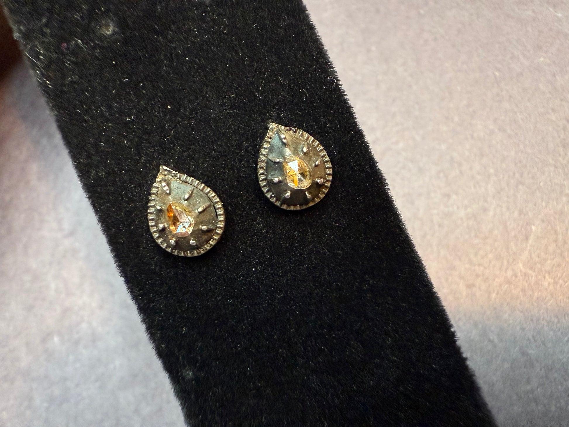 Georgian Set Diamond Earrings Converted to 14k Safety Posts
