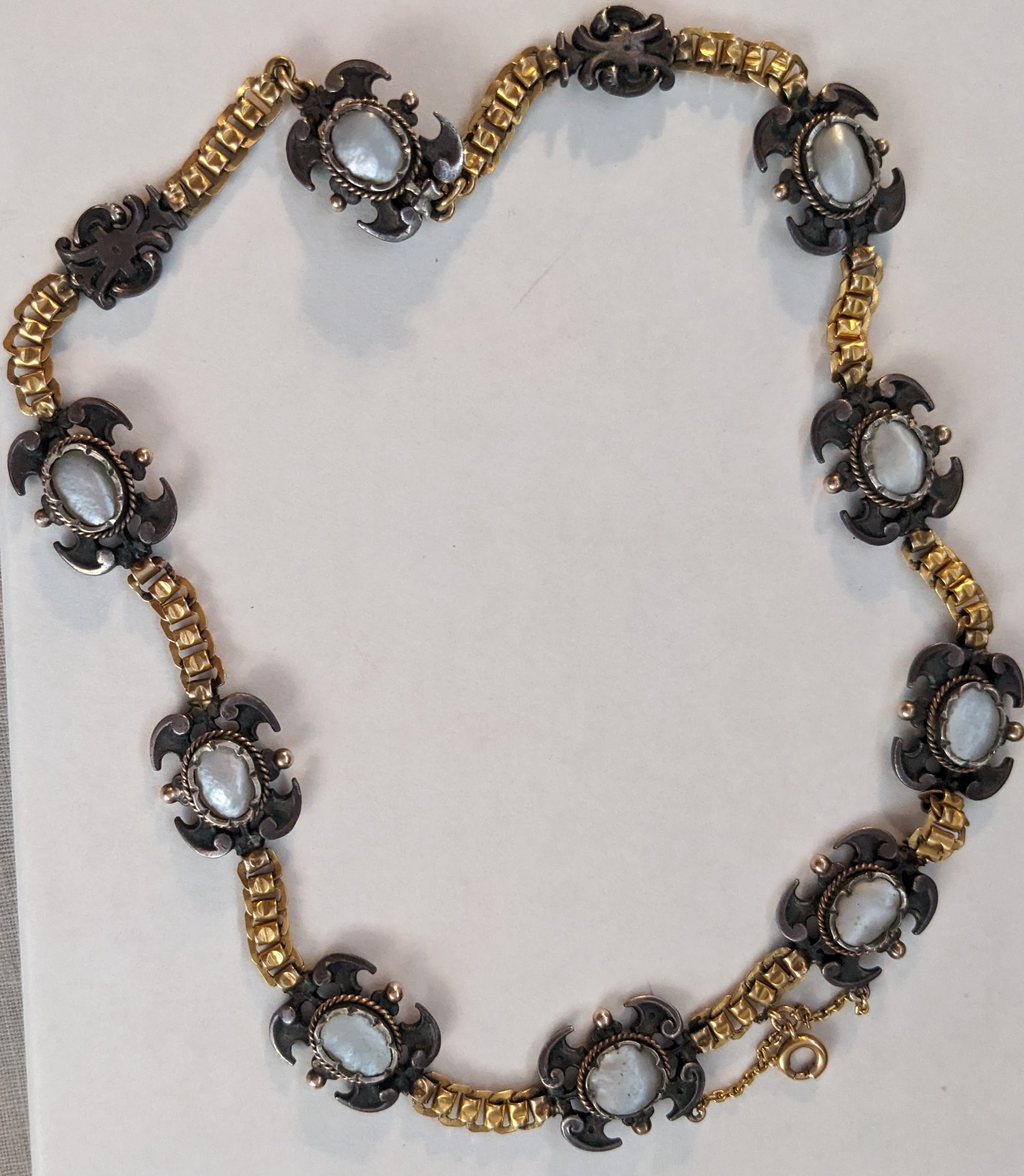 German 1870s 14k Gold and Mother of Pearl Necklace