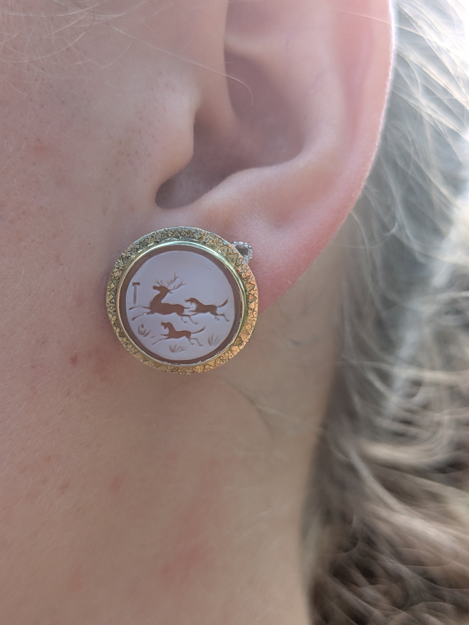 Hunting Cameo Earrings