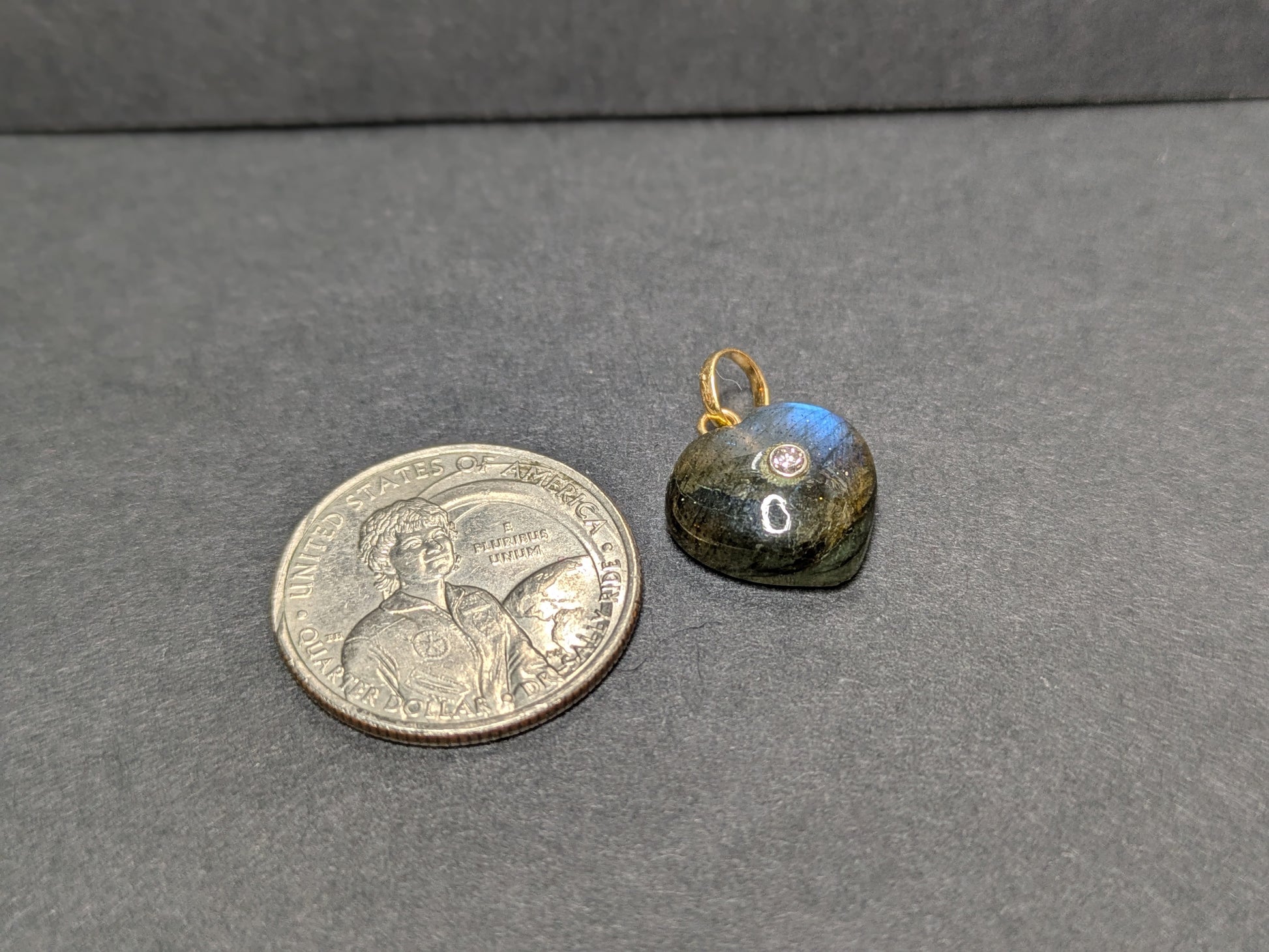 Labradorite Diamond Heart Charm