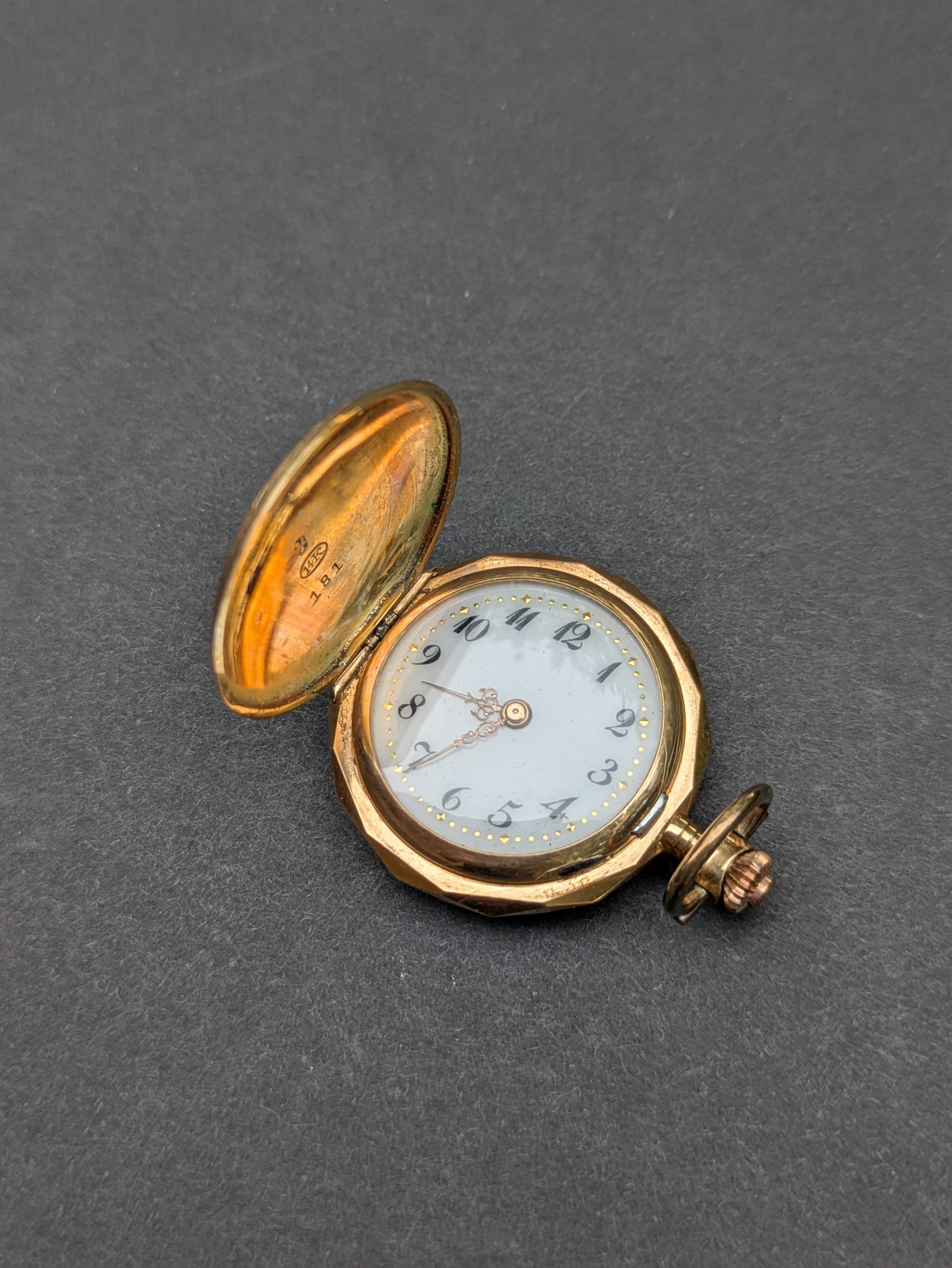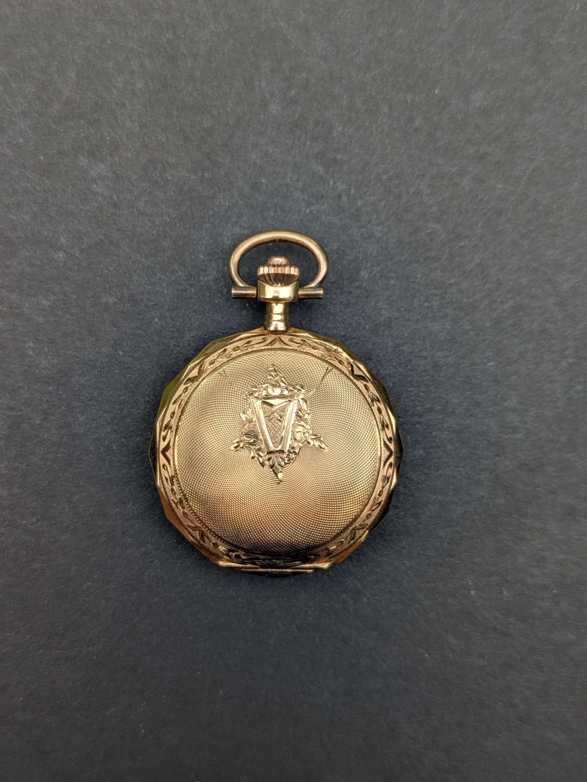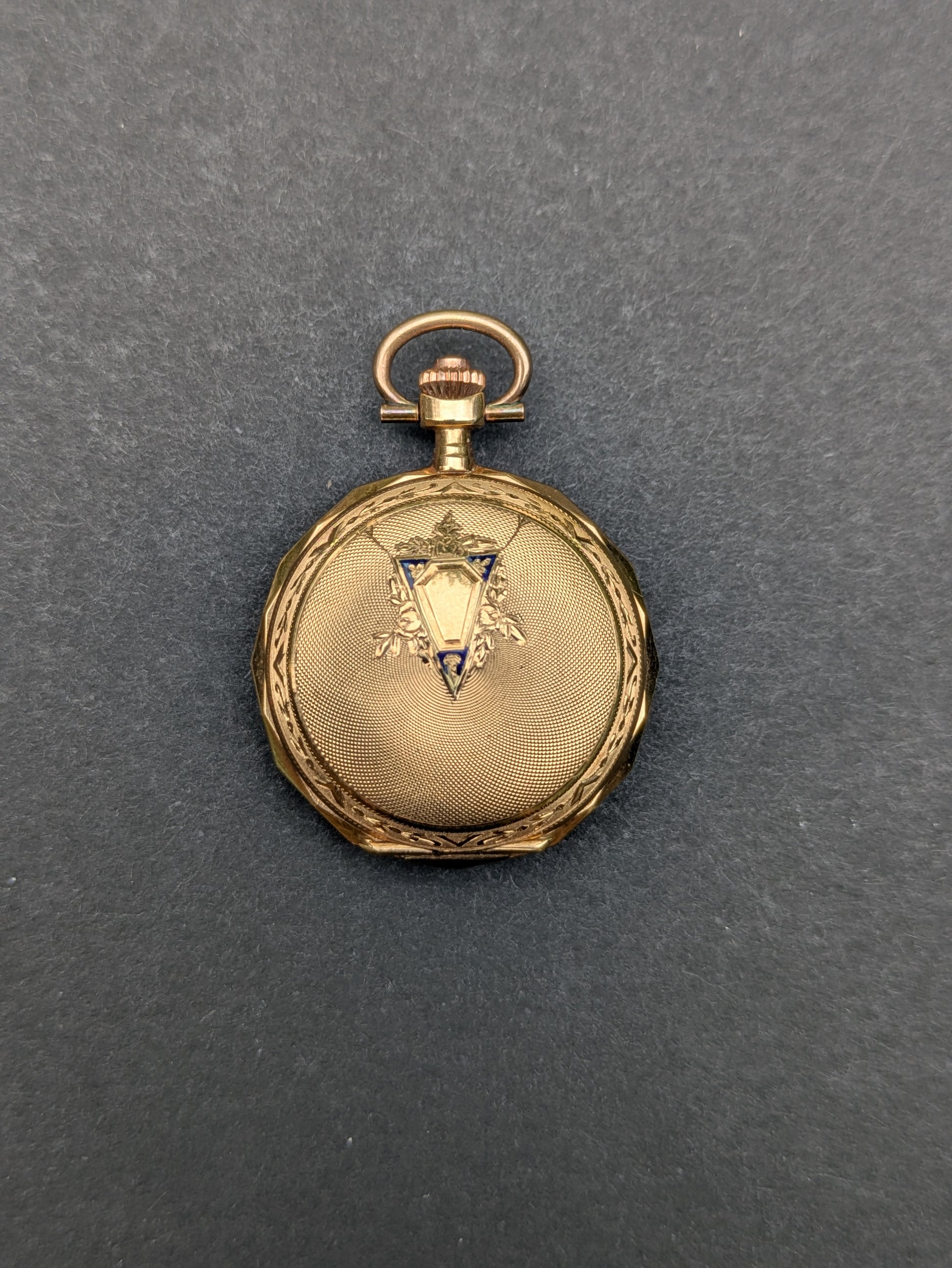 Ladies Small 14kt Full Covered Pocket Watch Enamel Face Engraved