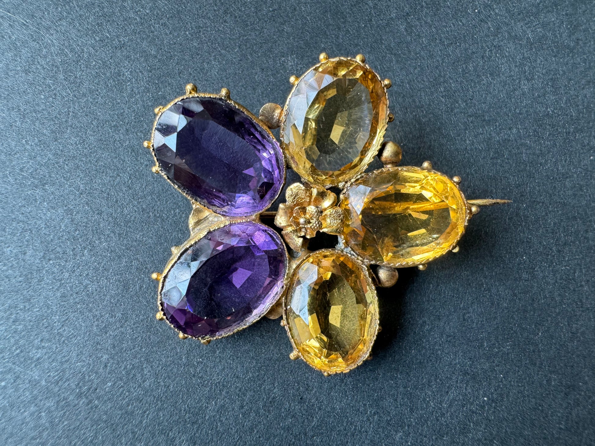 Very Early Victorian Large Amethyst and Citrine Brooch