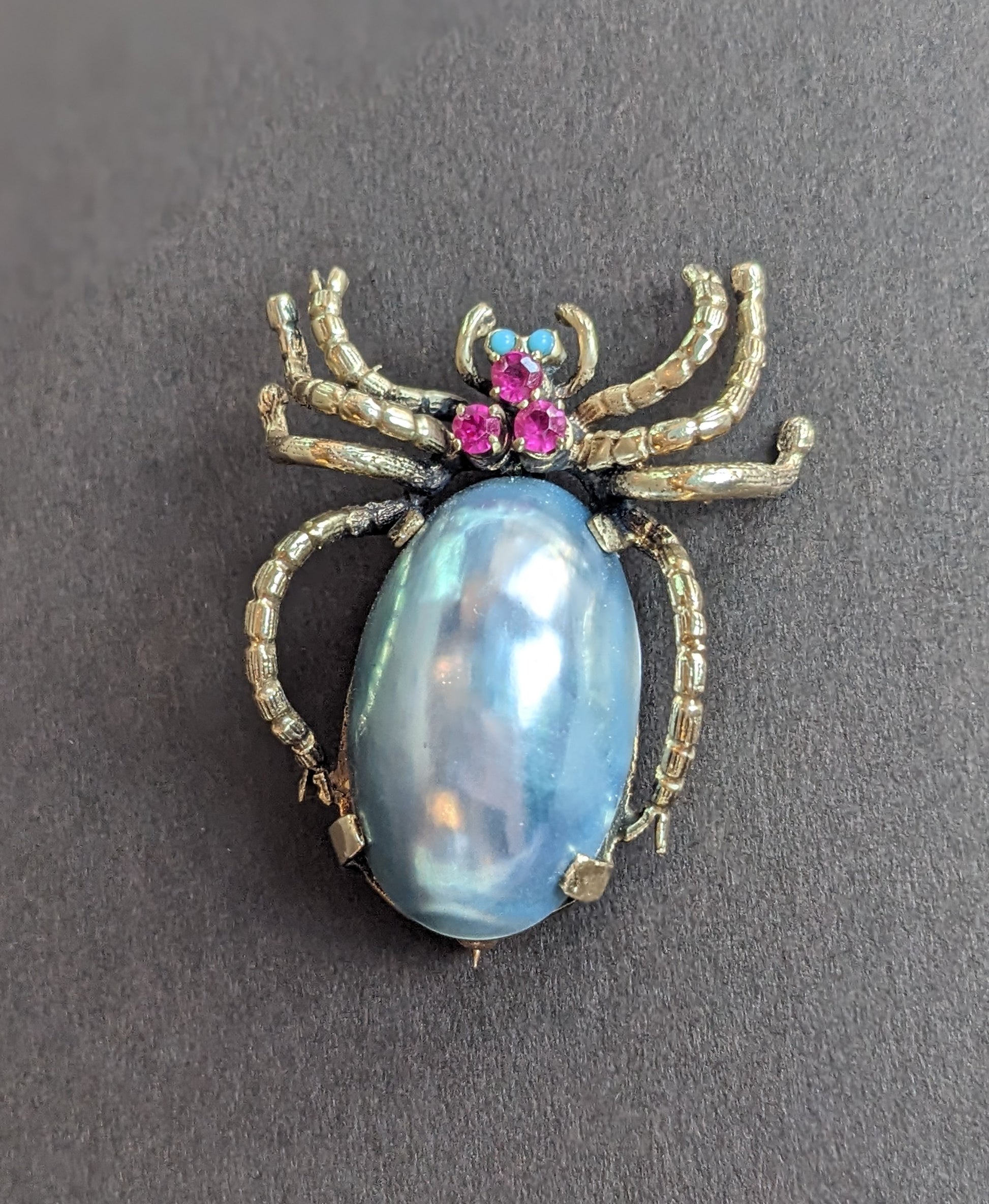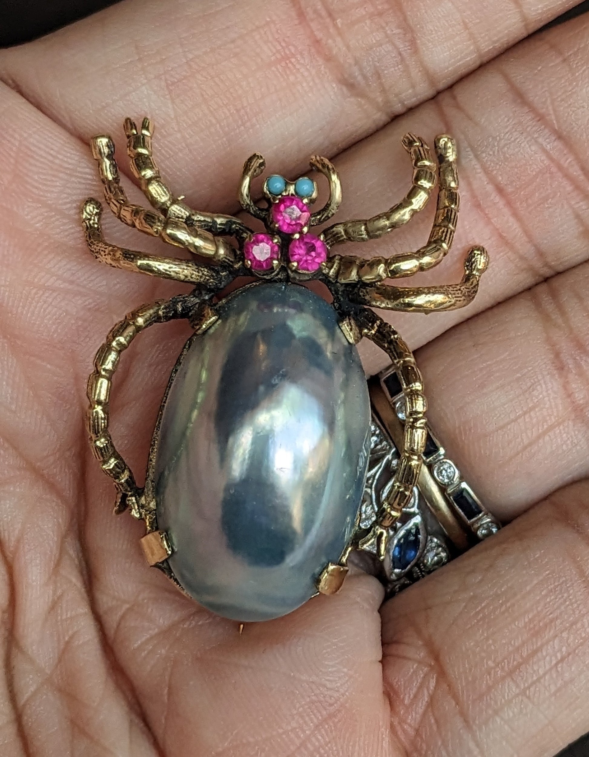 Large Grey Pearl, Ruby, and Opal Spider Brooch