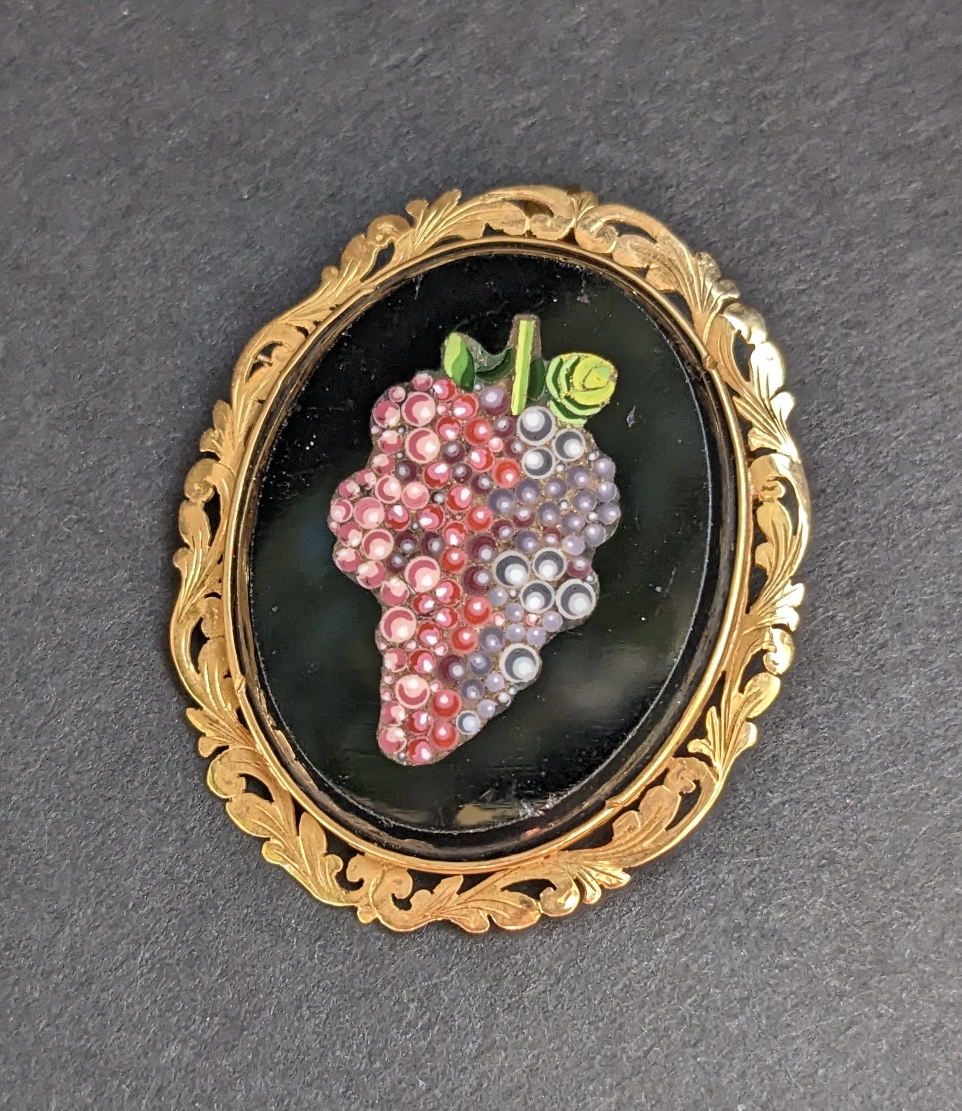 Large Pietra Dura Brooch/Pendant with Grape motif