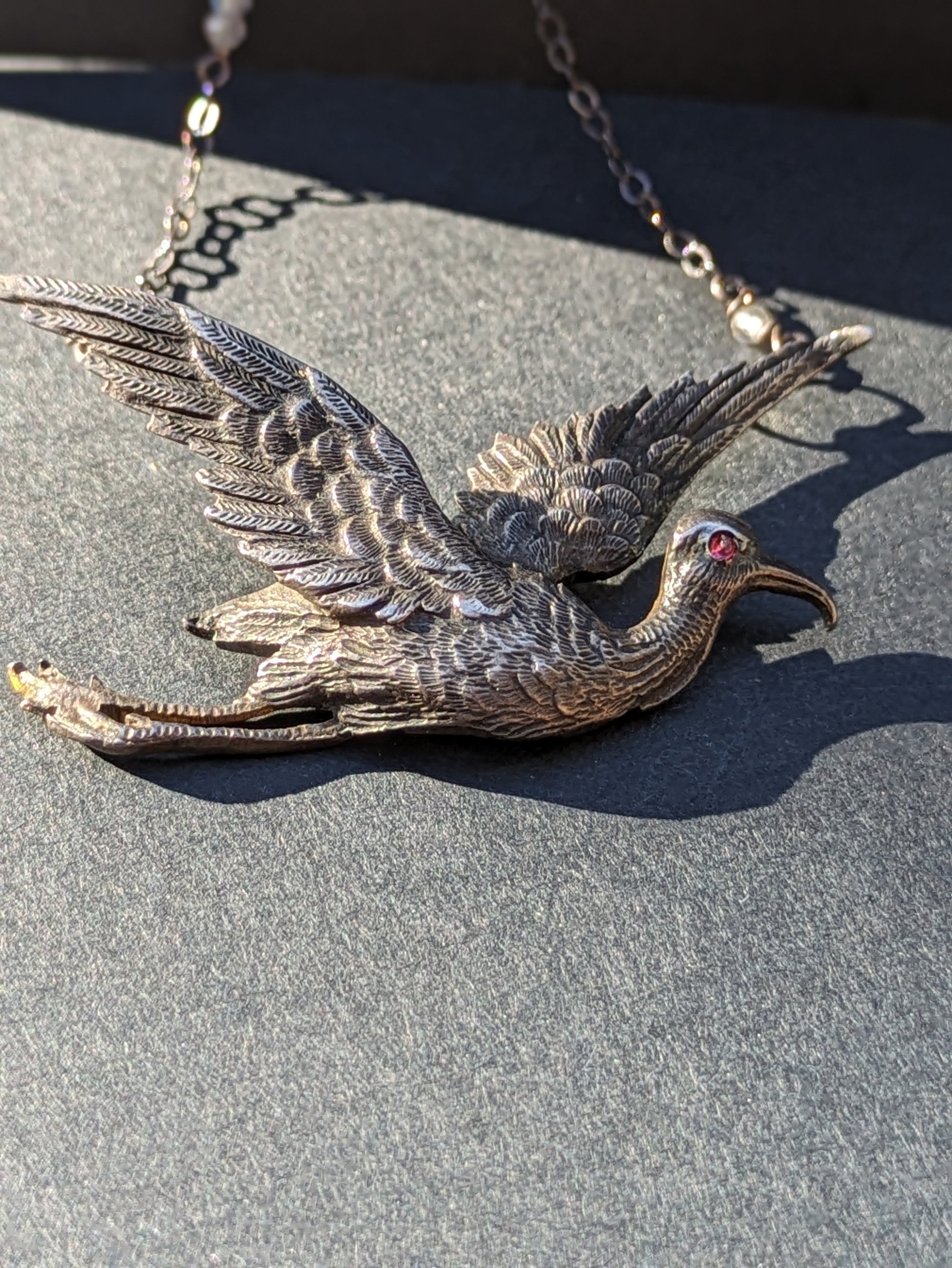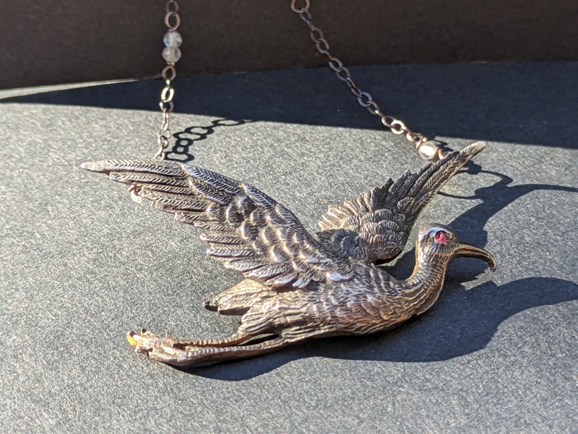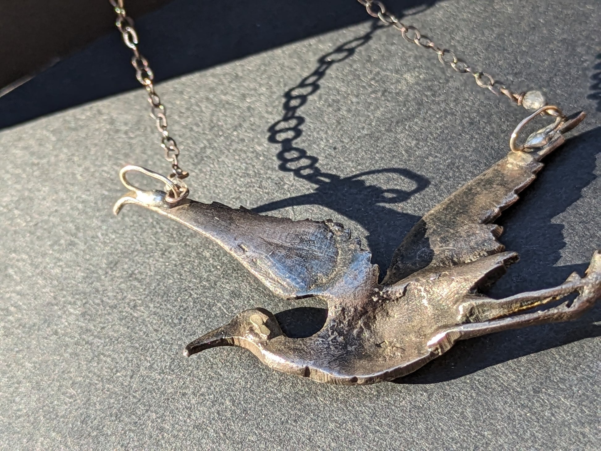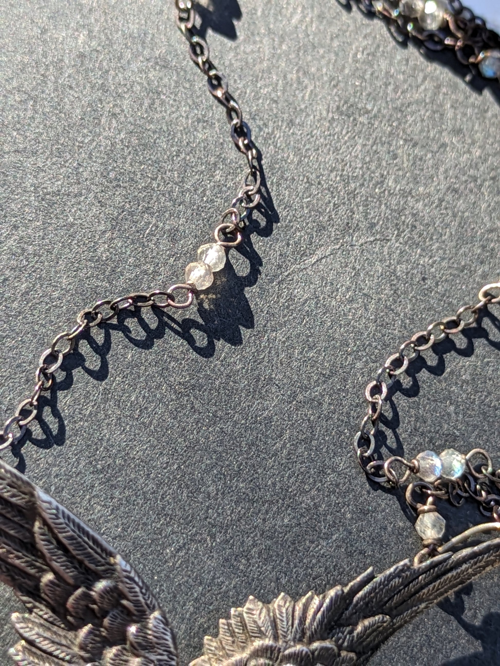 8 inch chain length (clasped), 9 inch total length (with stork)