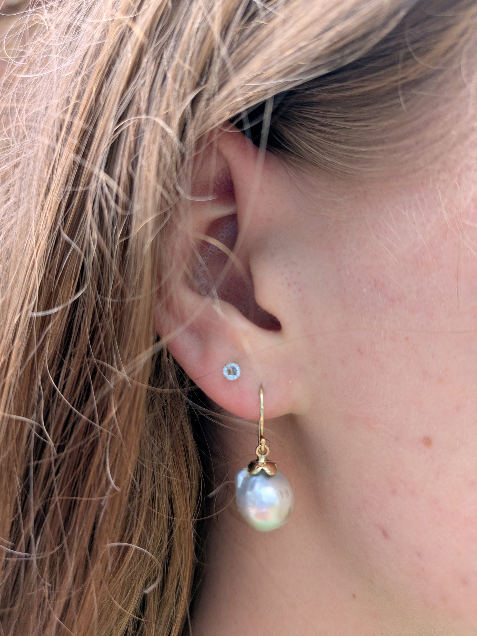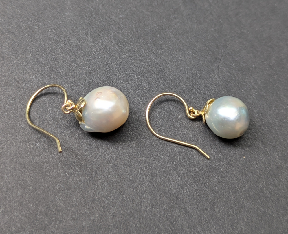 Natural Pearl Flower Cap Earrings on Shepard Hooks