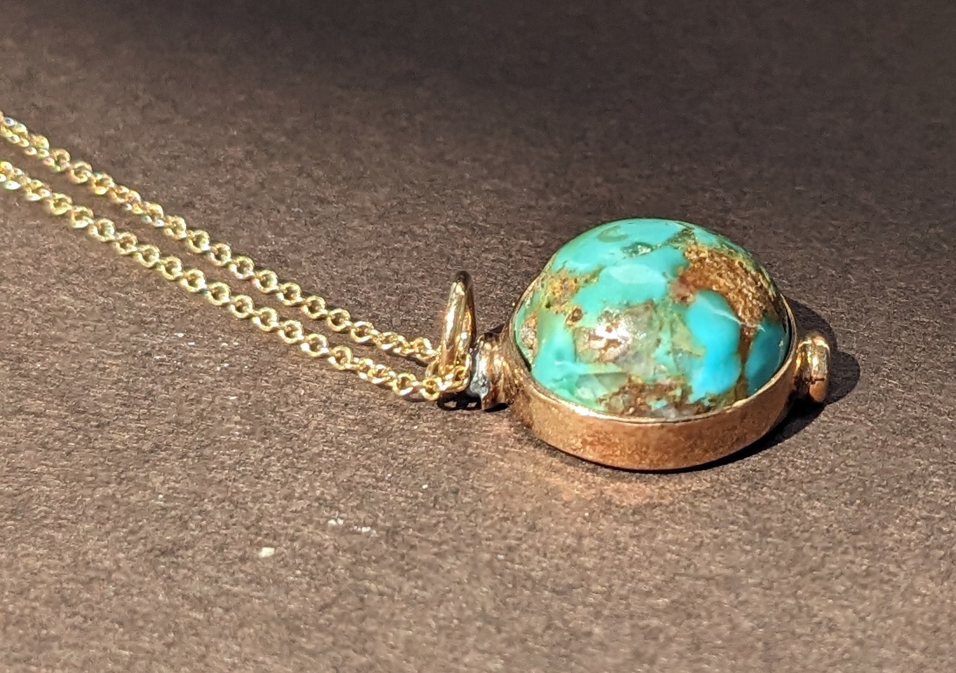 Natural Turquoise Cabochon Pendant 14k Chain