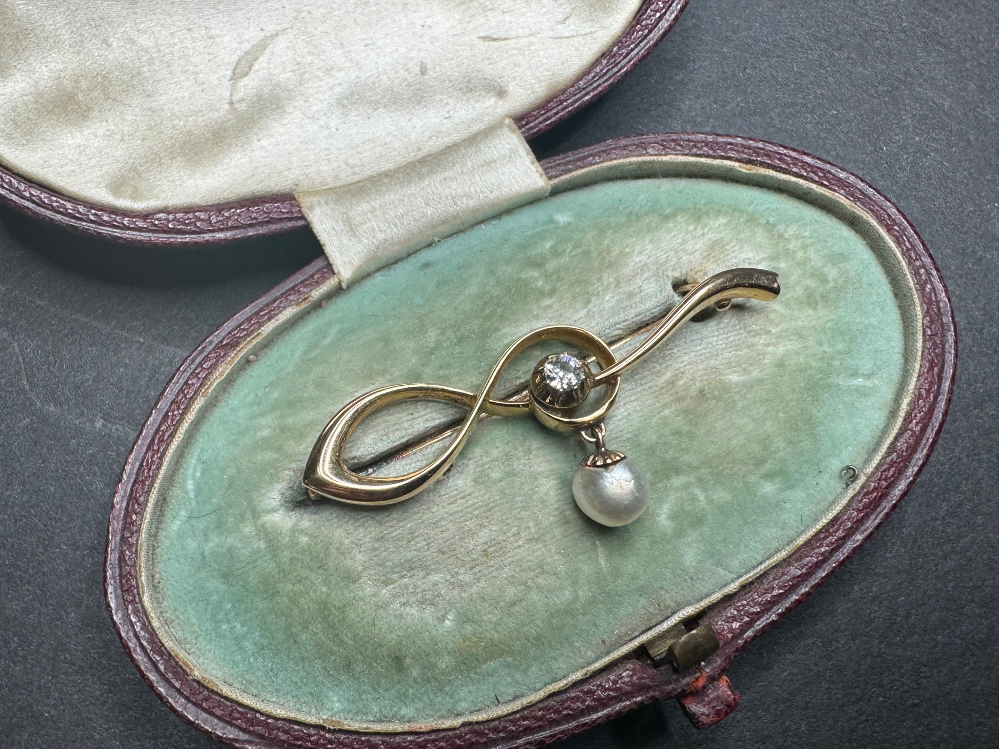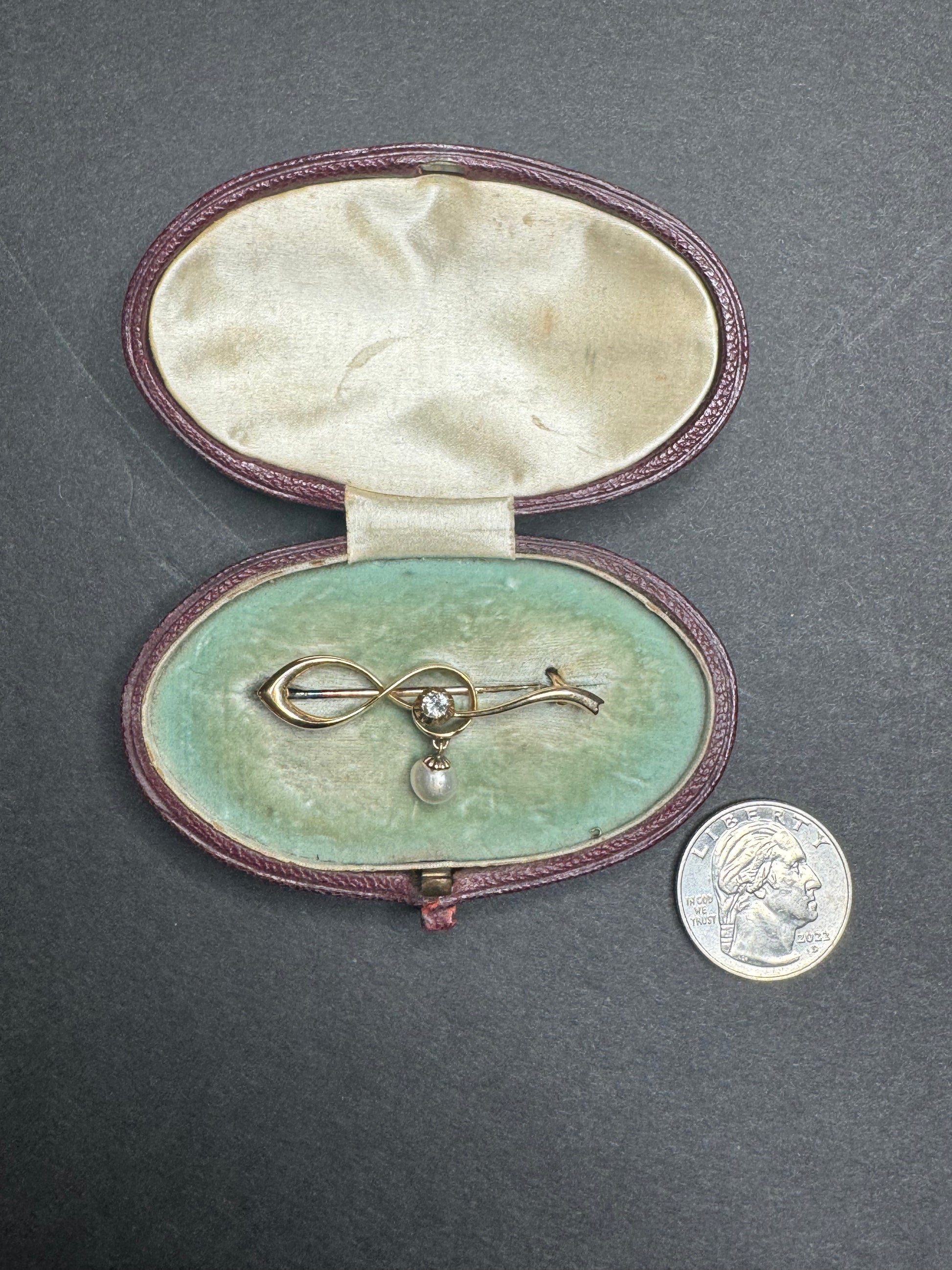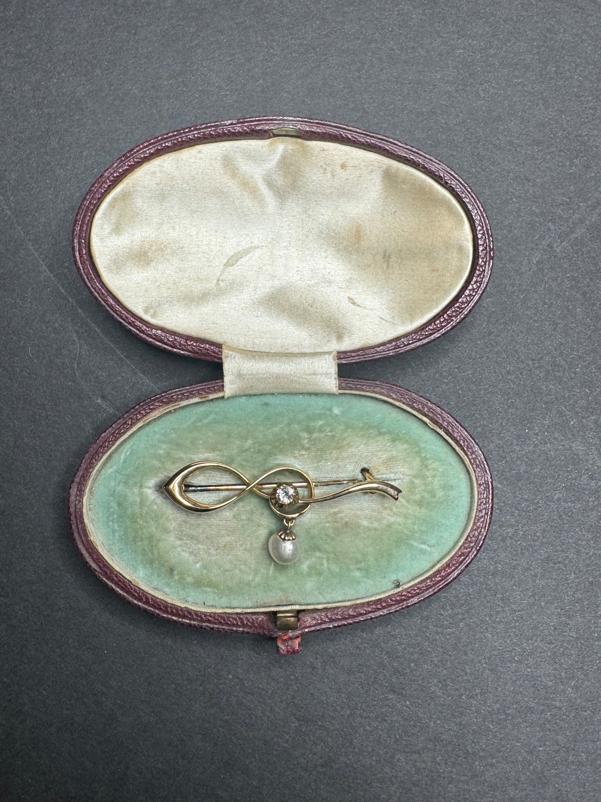 Pearl and Minecut Diamond Drop Brooch