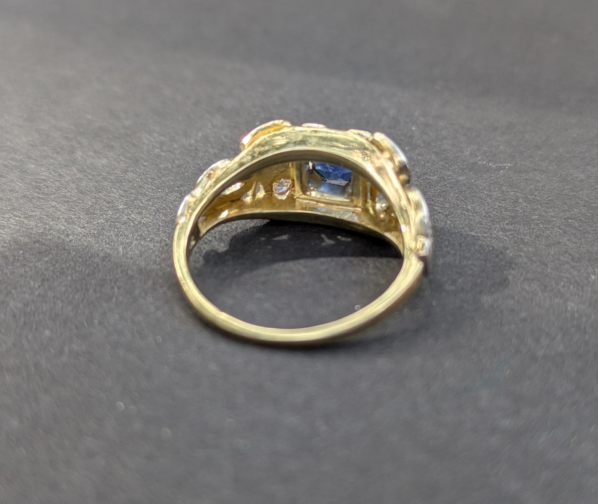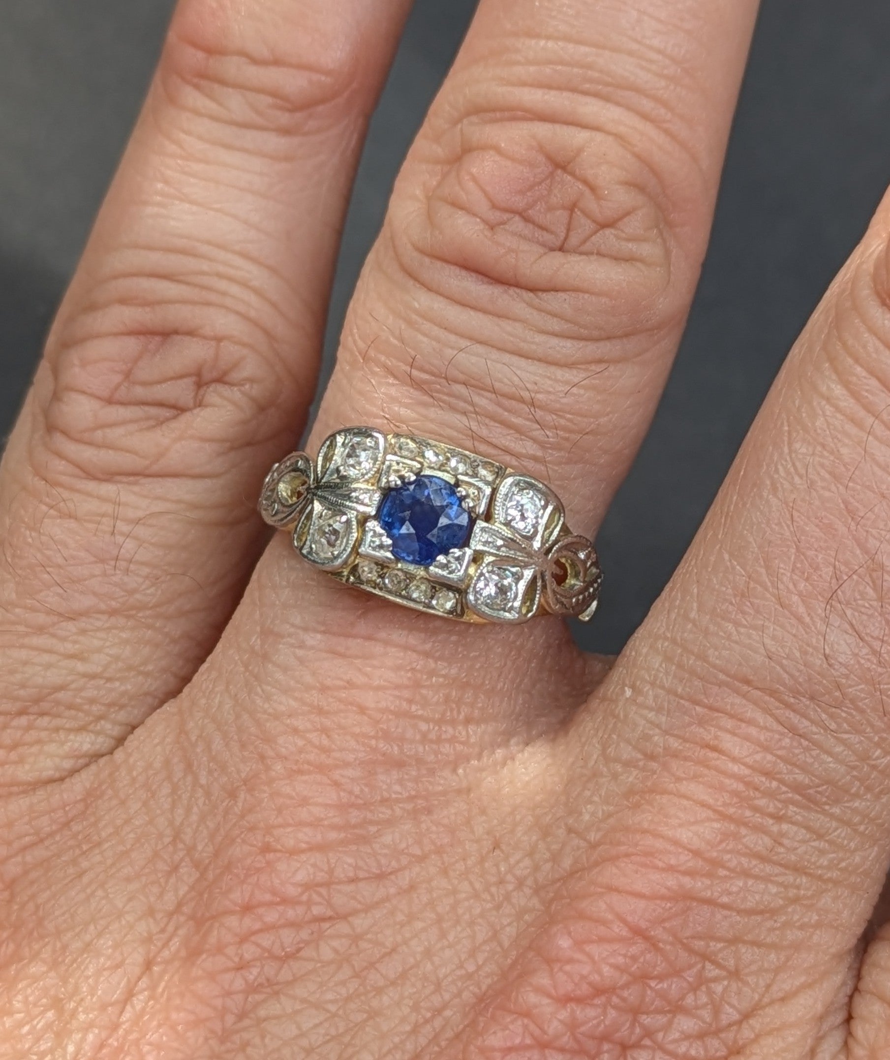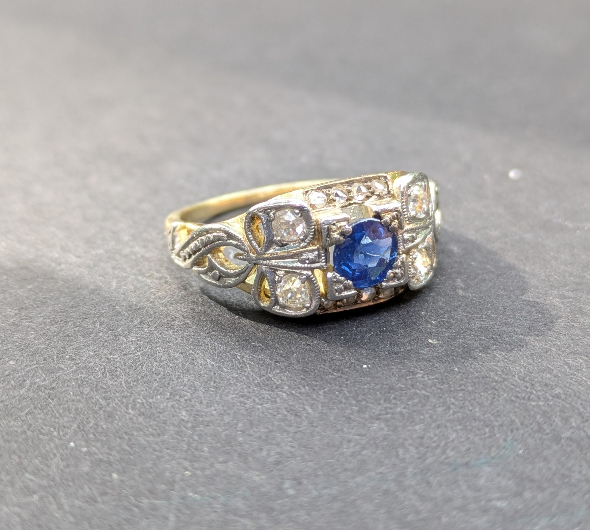 Platinum, 18k, Diamond and Sapphire Ring with Bow Details