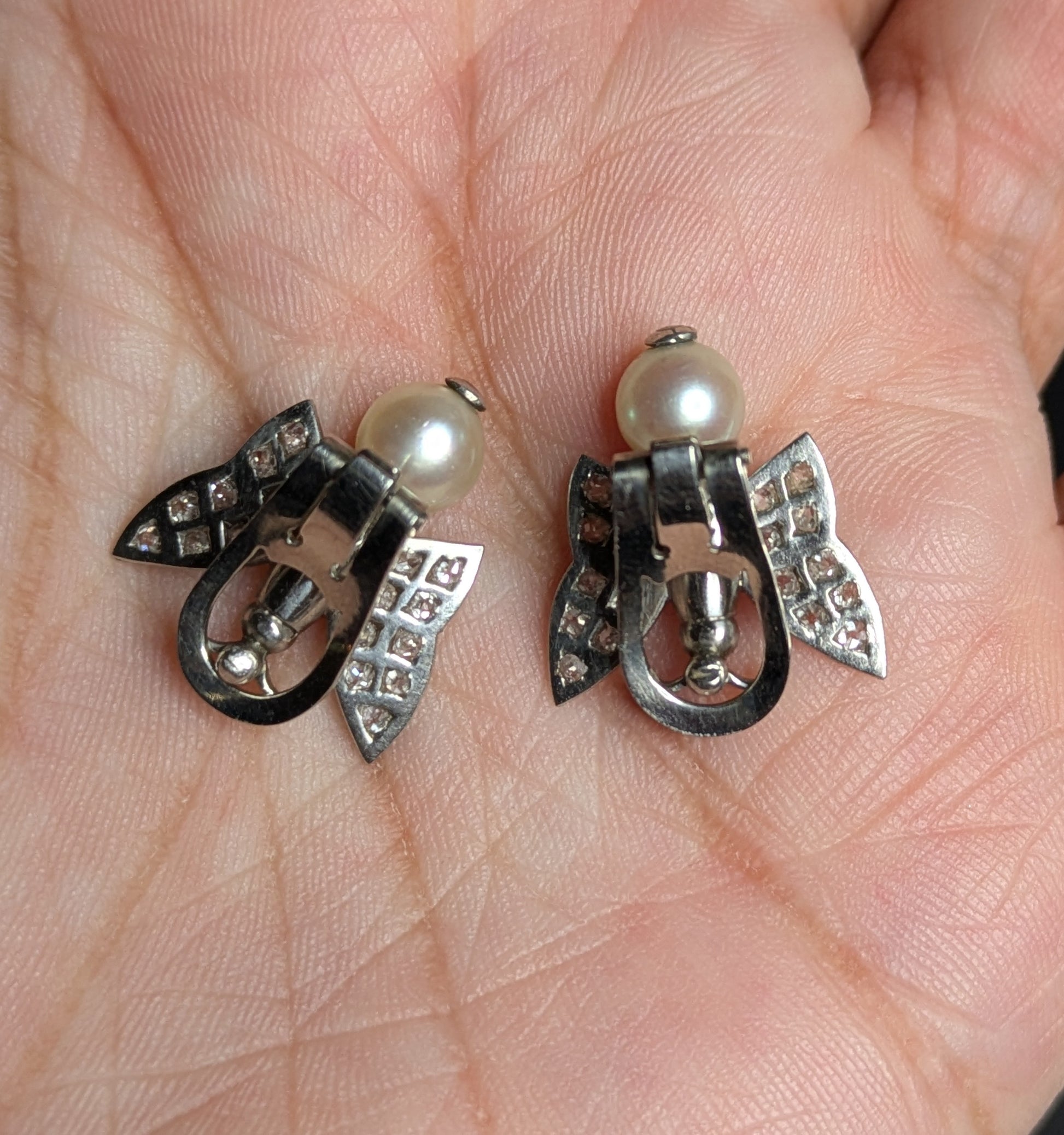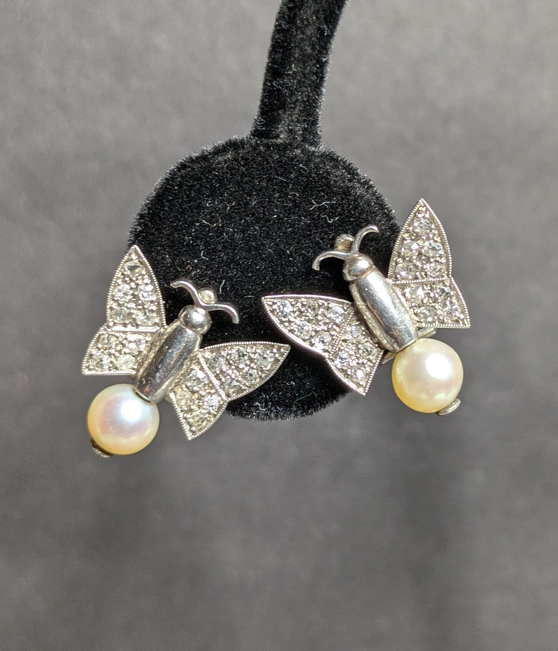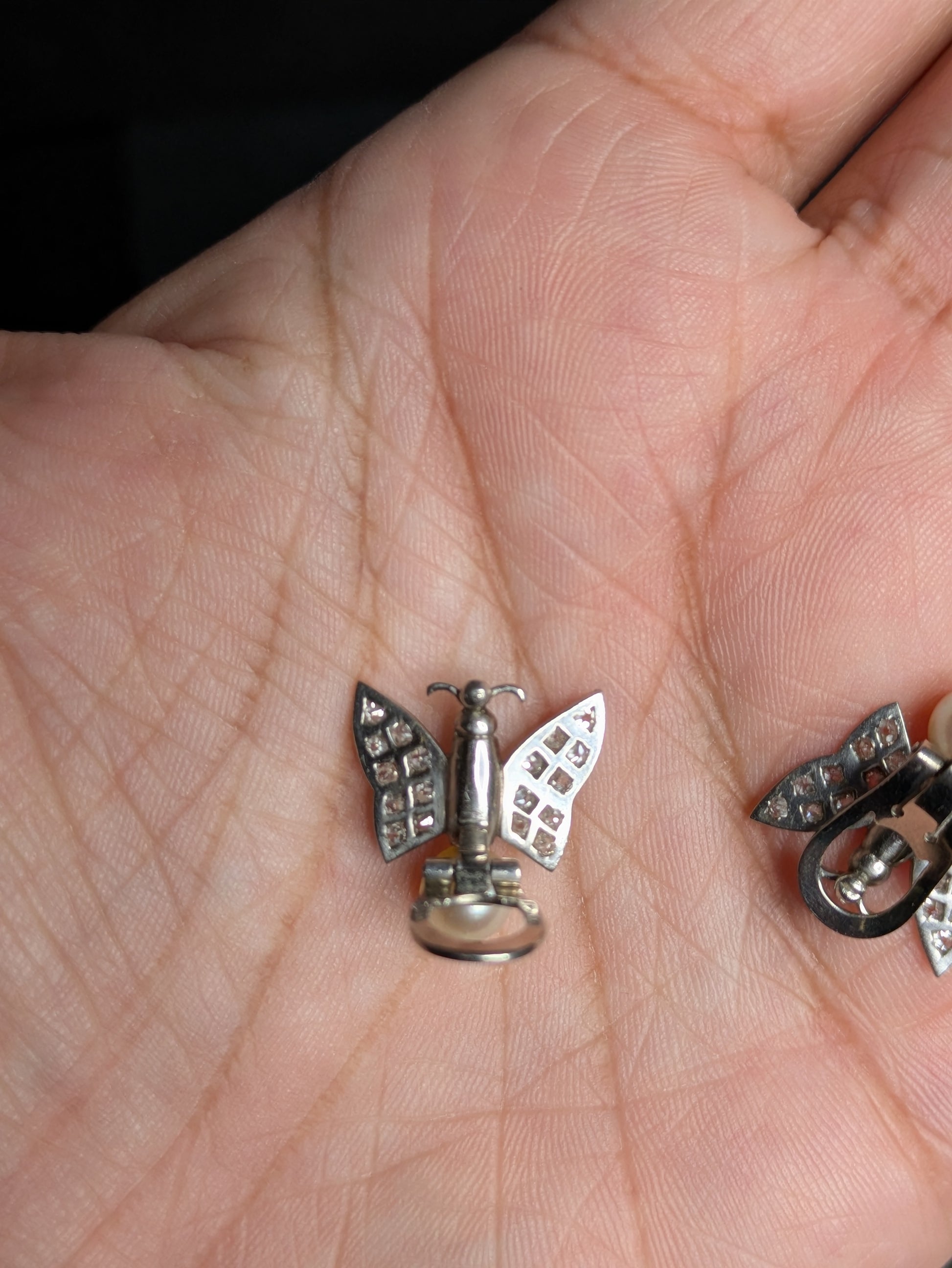 Platinum Diamond and Pearl 1940's Butterfly Earrings