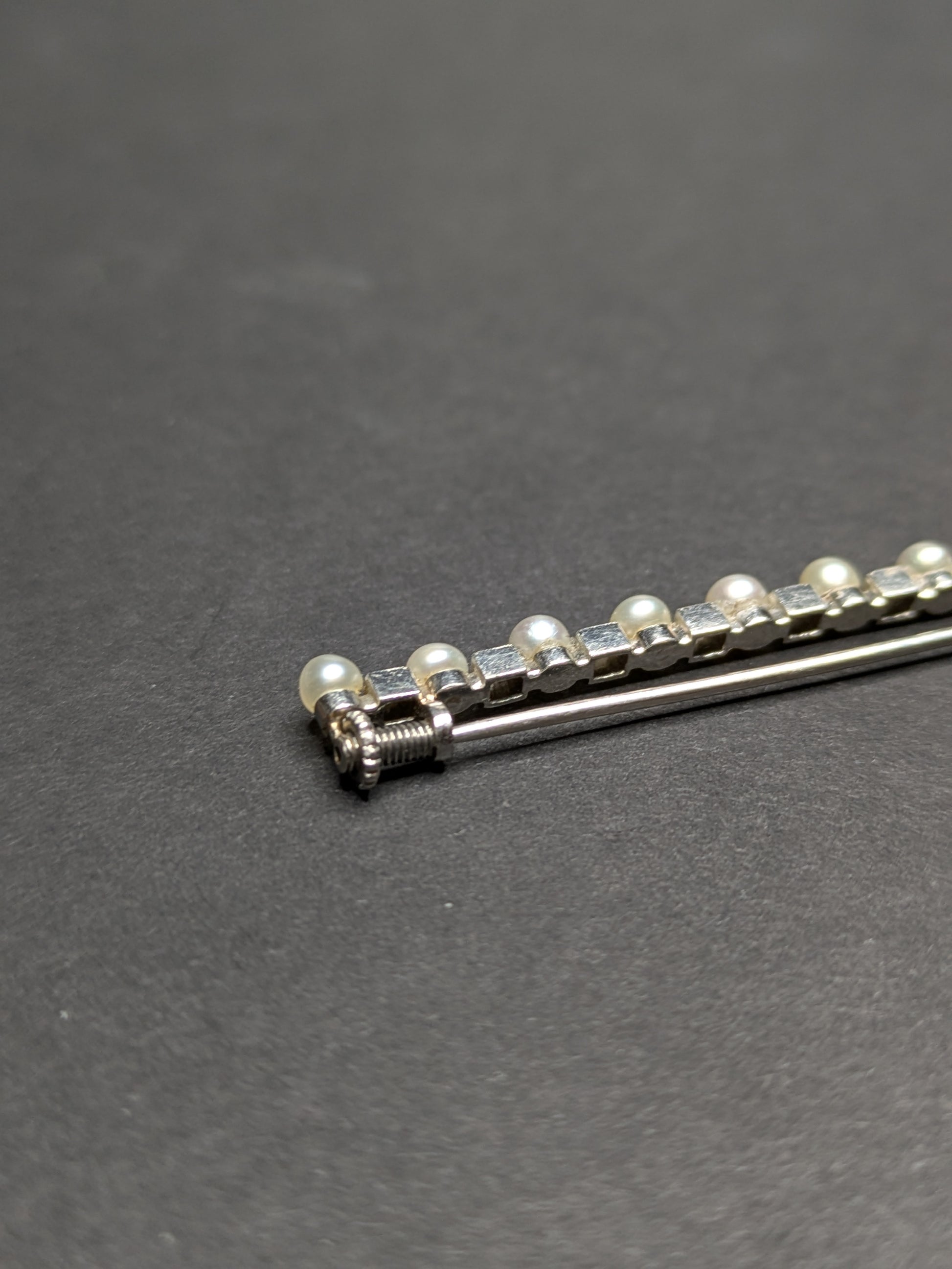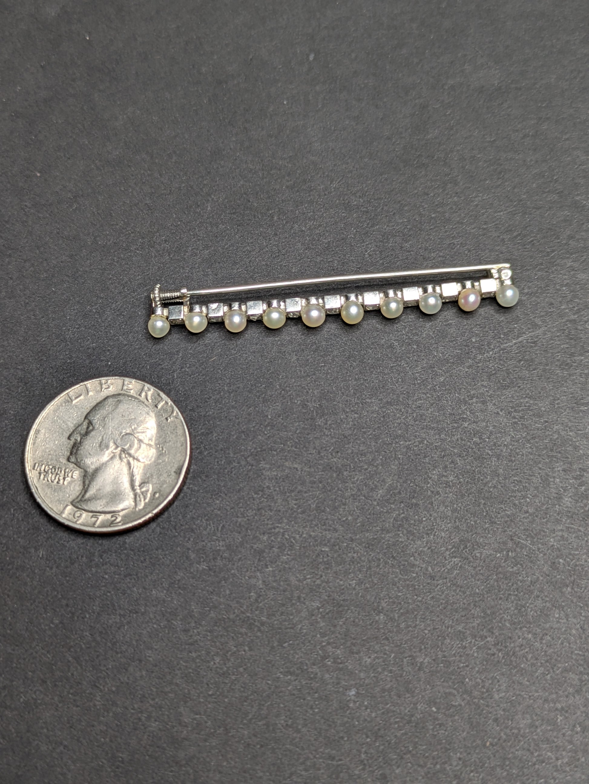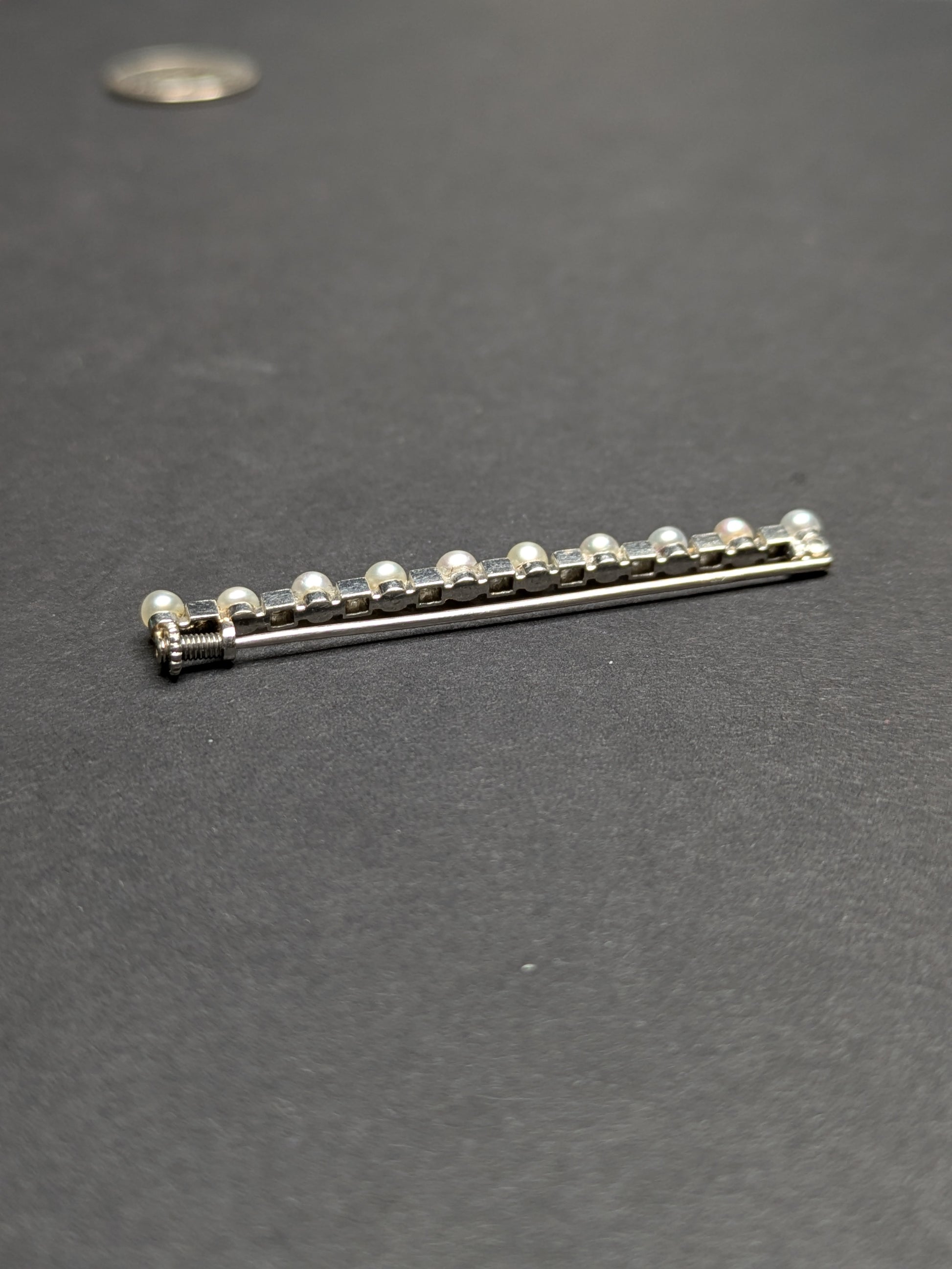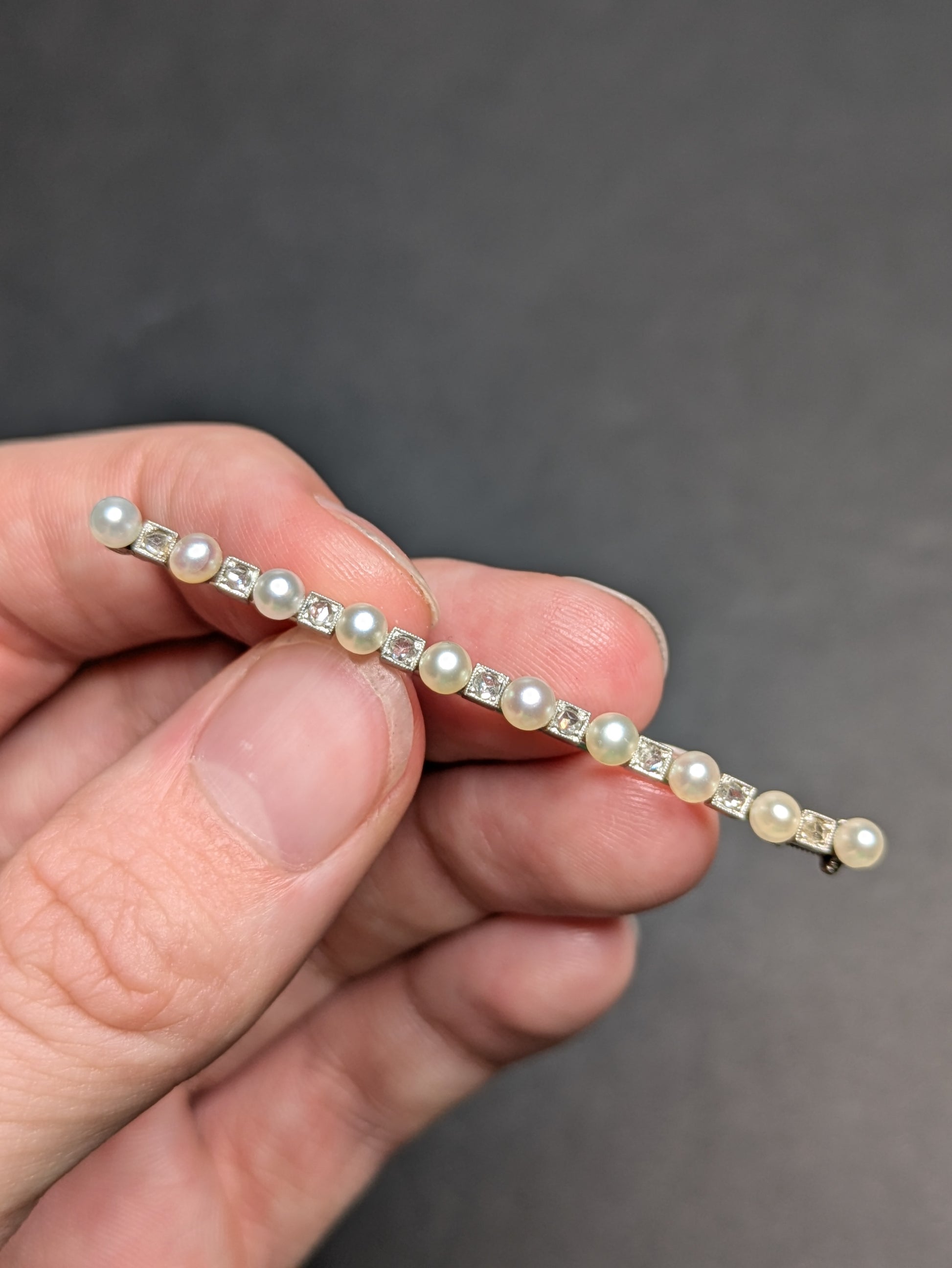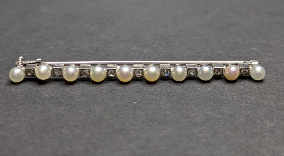 Platinum Pearl and Single Cut Diamond Bar Pin