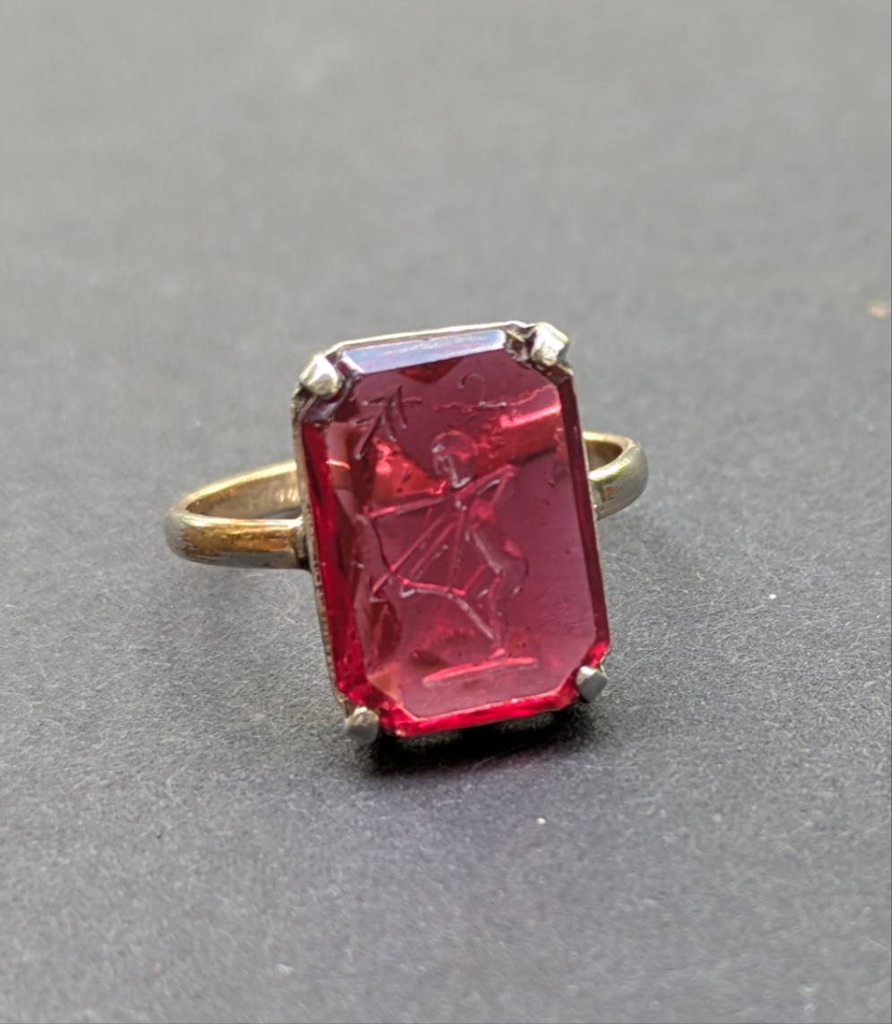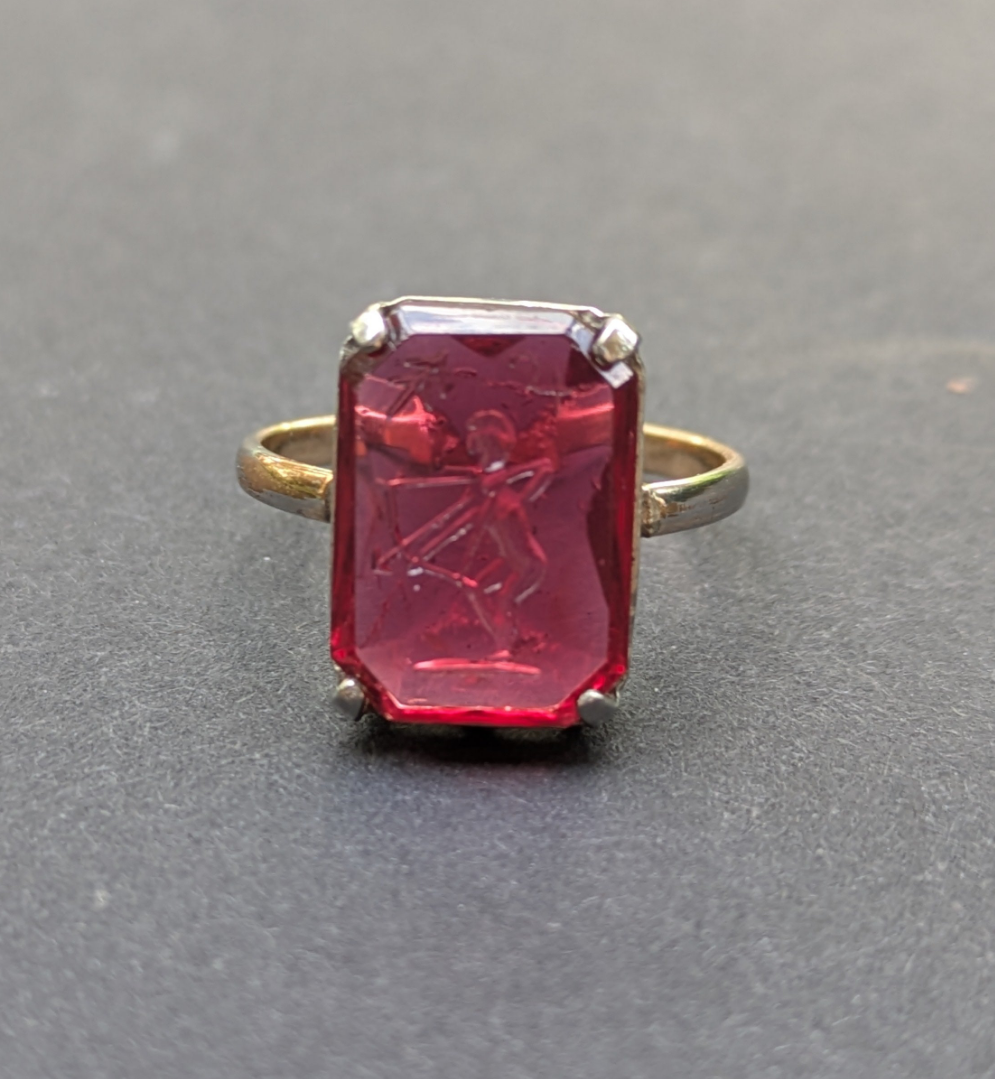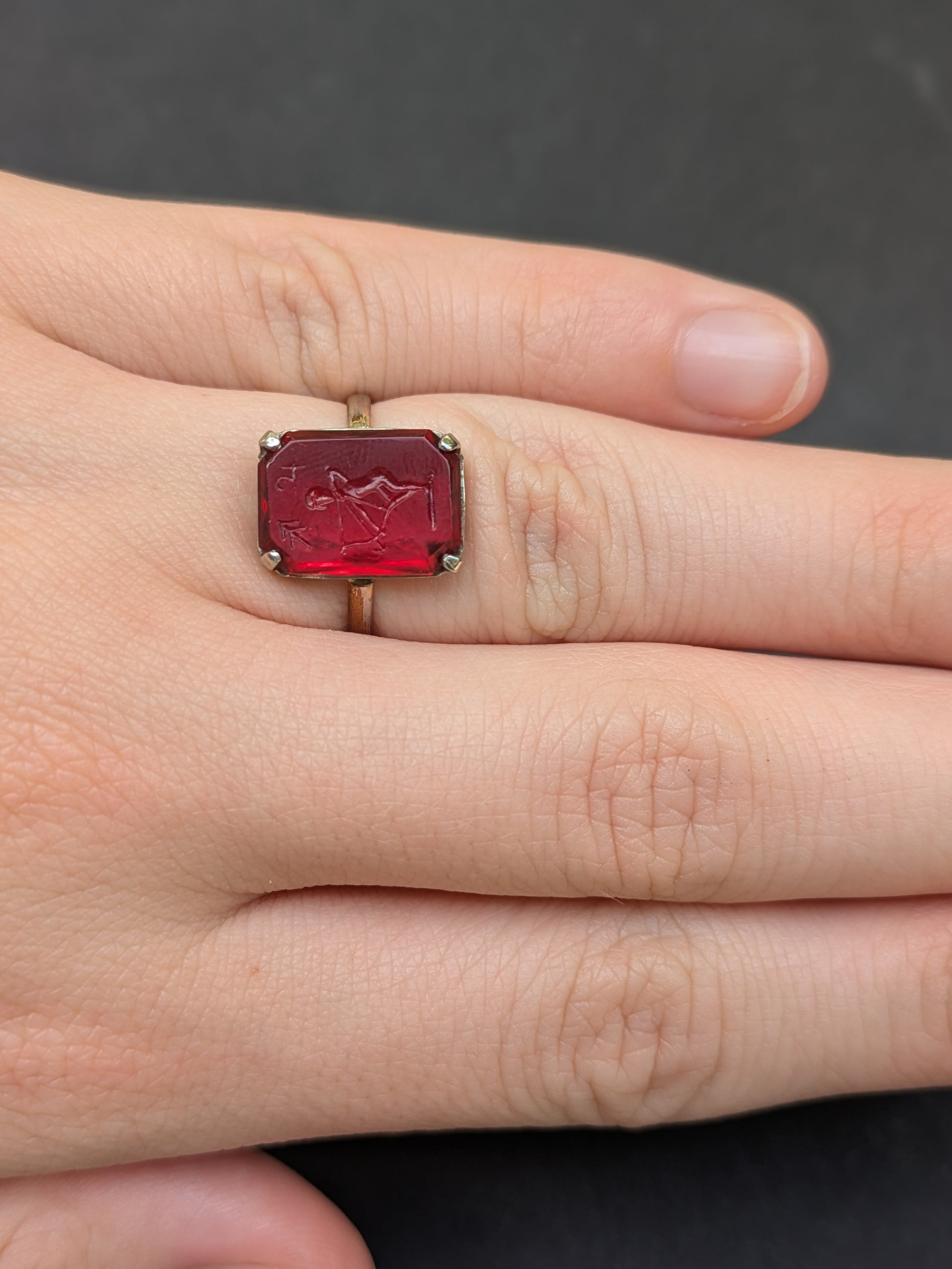 Red Glass Intaglio of Jupiter Reset in White Gold