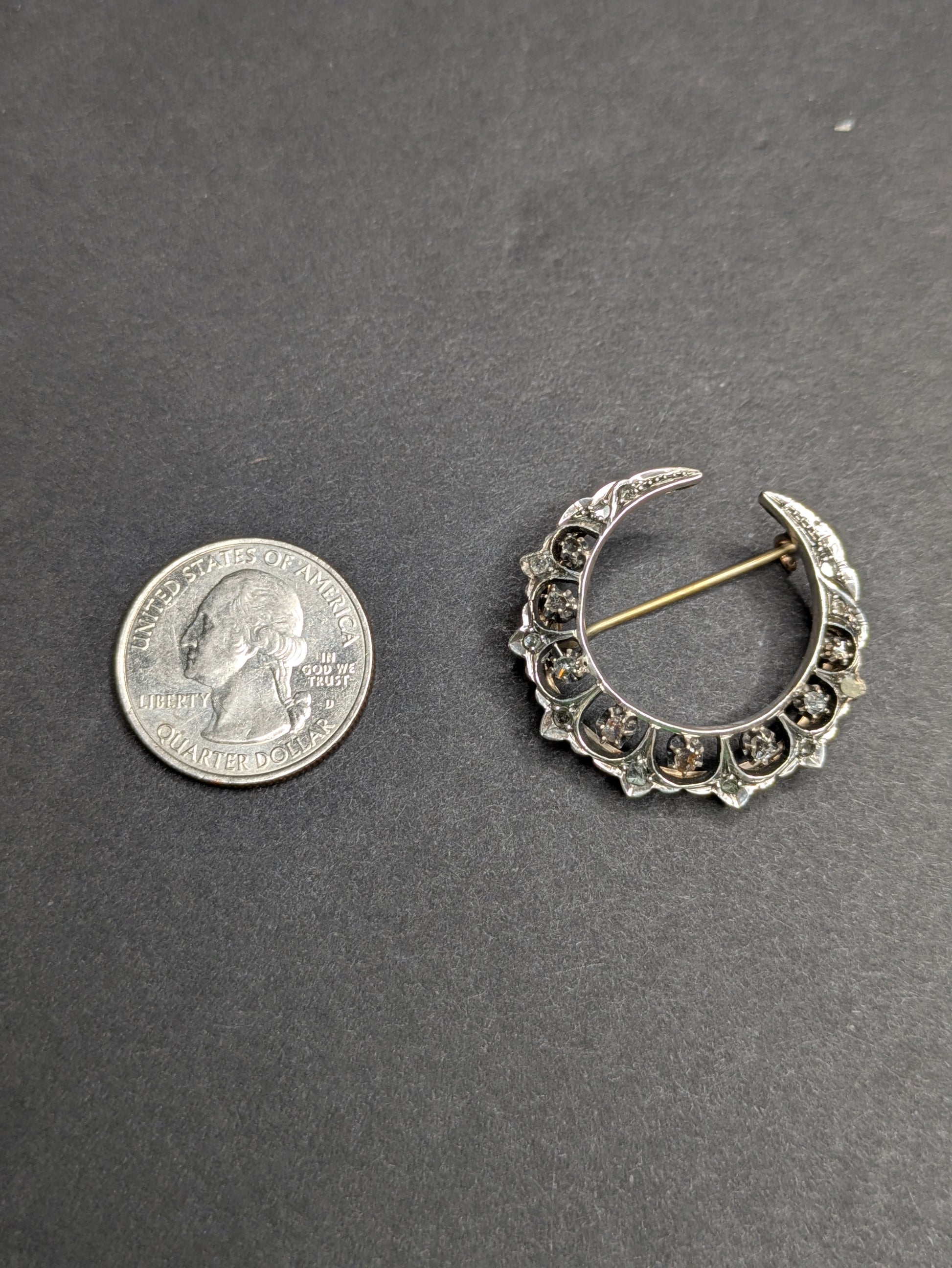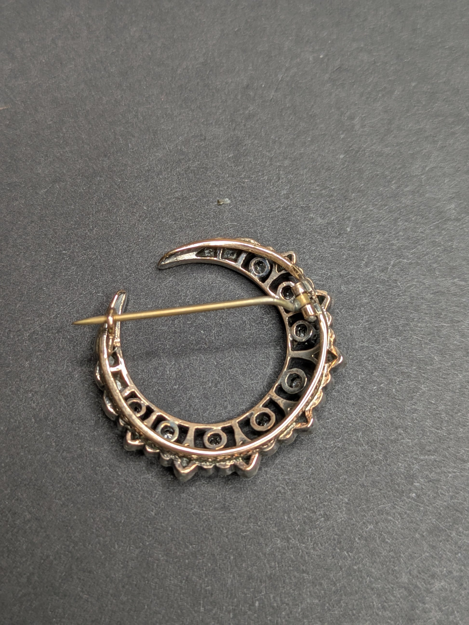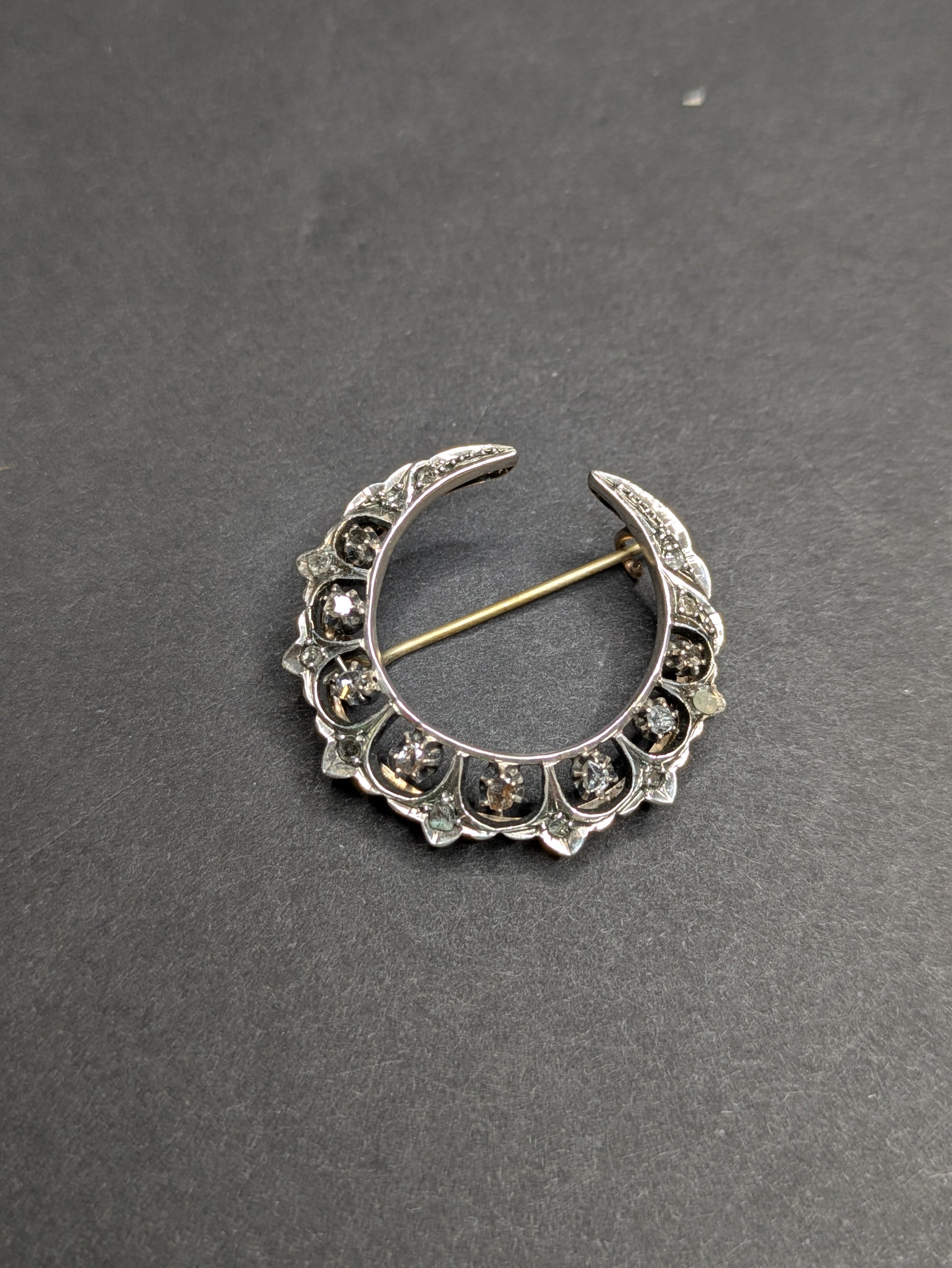 Rose Cut Diamond Crescent Brooch