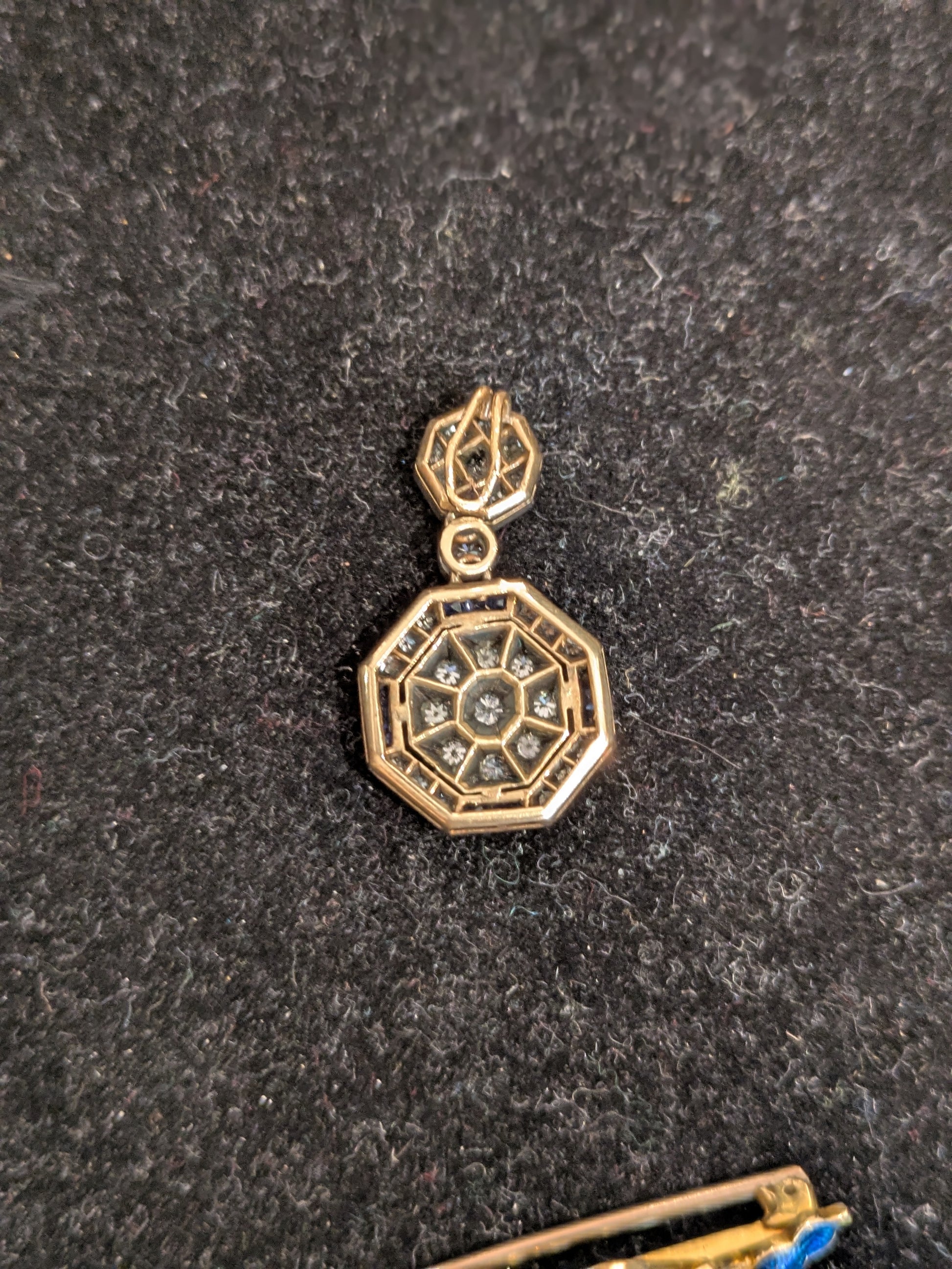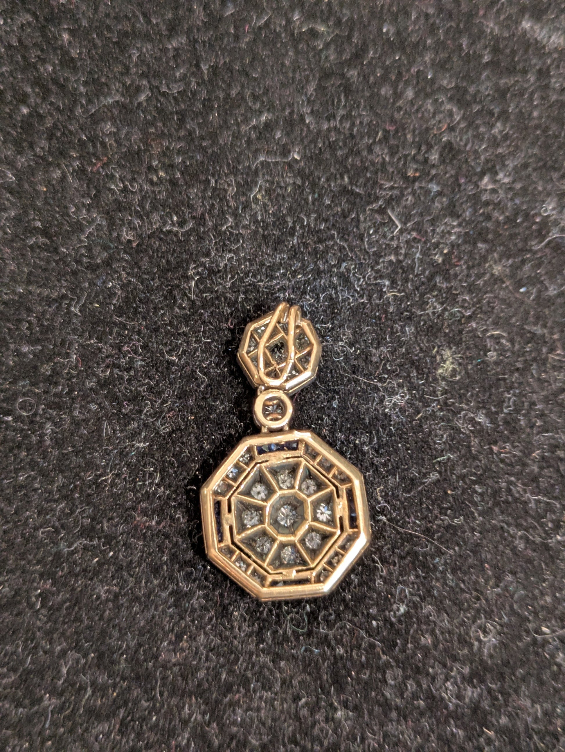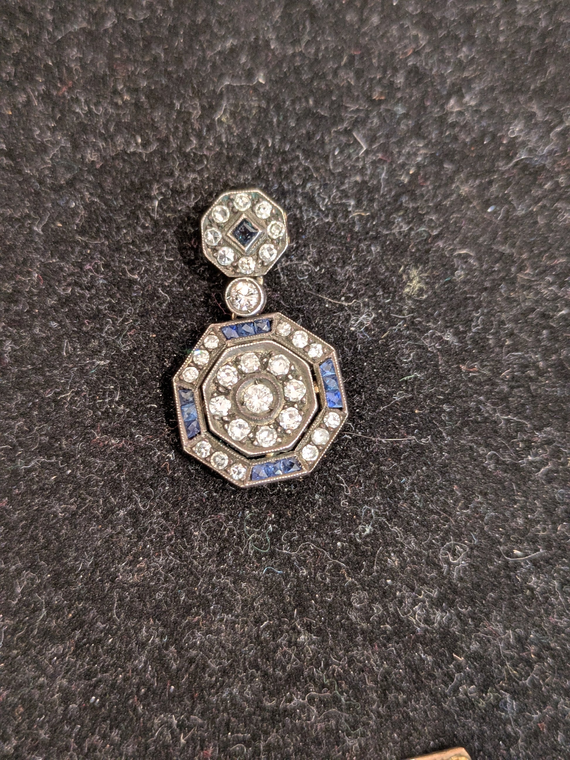 Sapphire and Diamond 14kt and Silver Art Deco Pendant