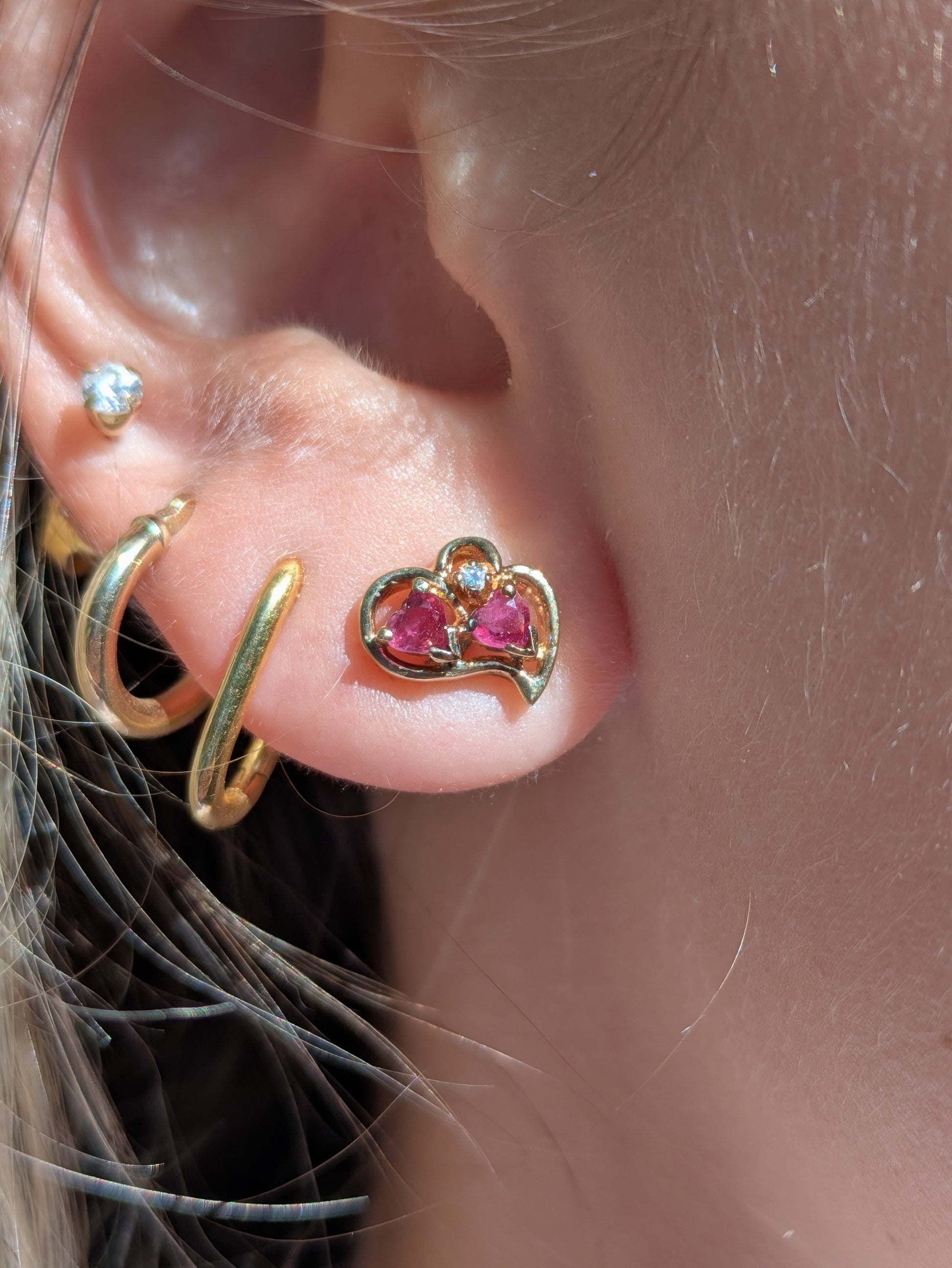 Small 14k Ruby and Diamond Heart Stud Earrings