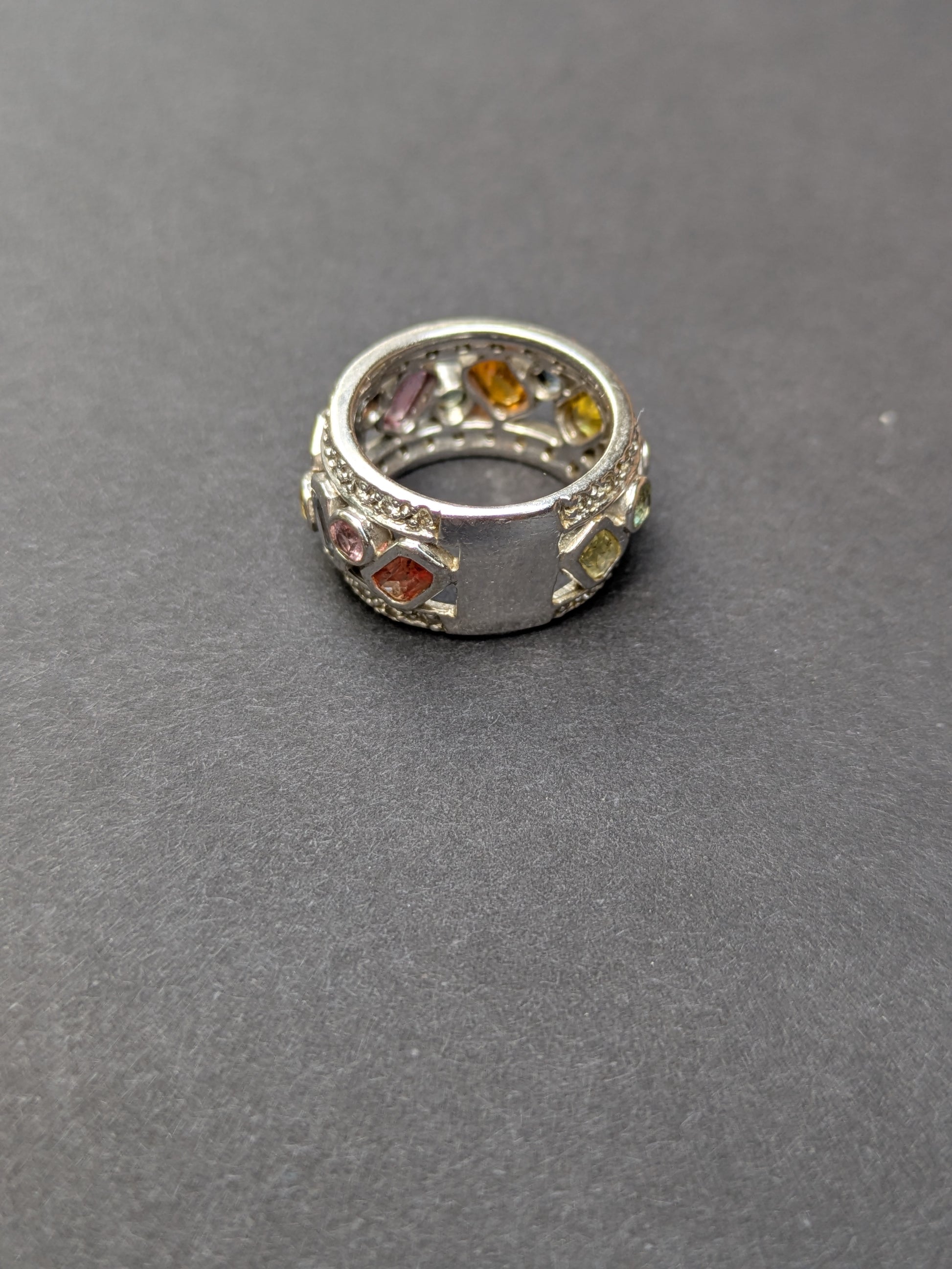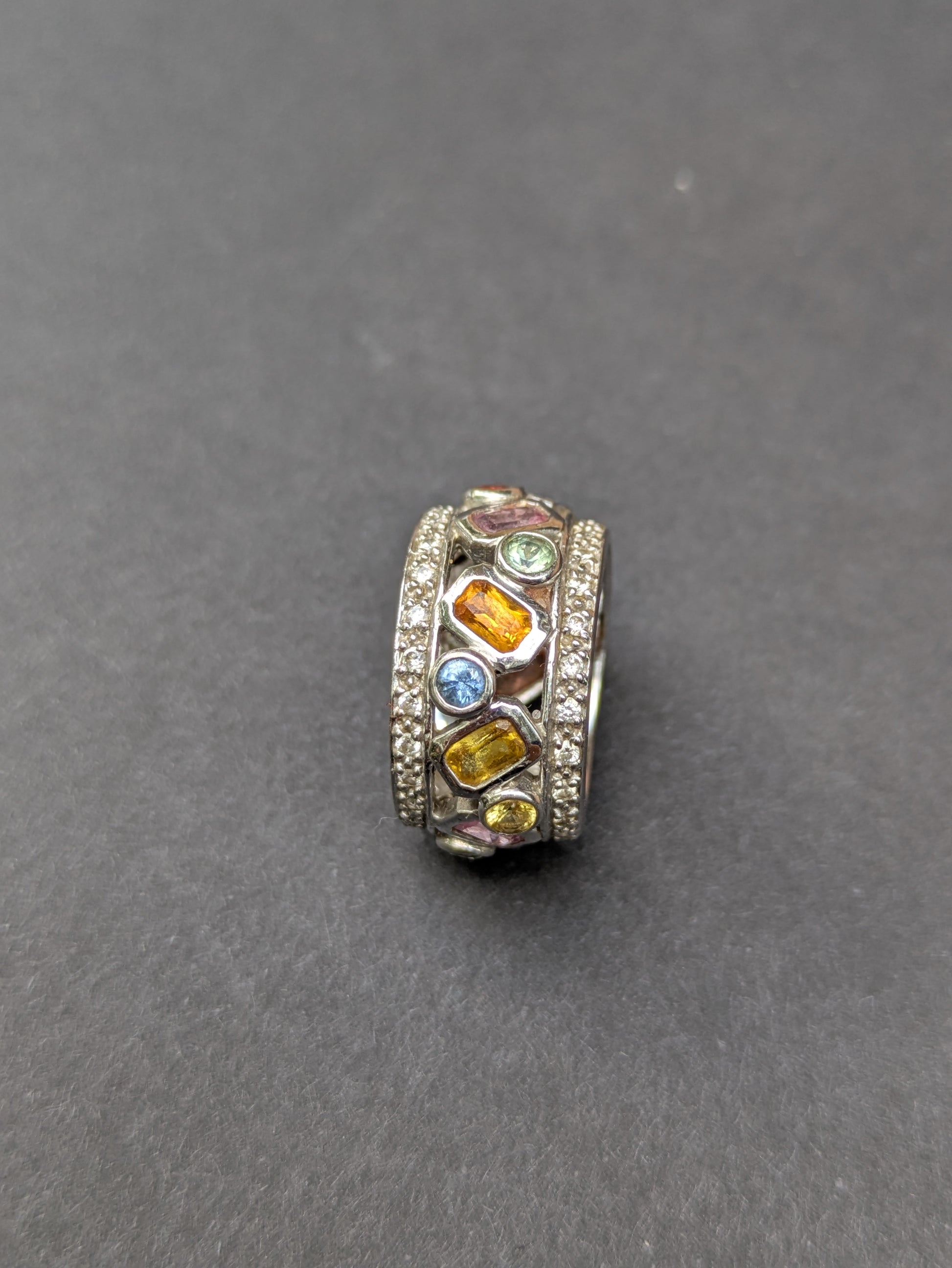 Sonia B-Estate Wide White Gold Band set with Gemstones