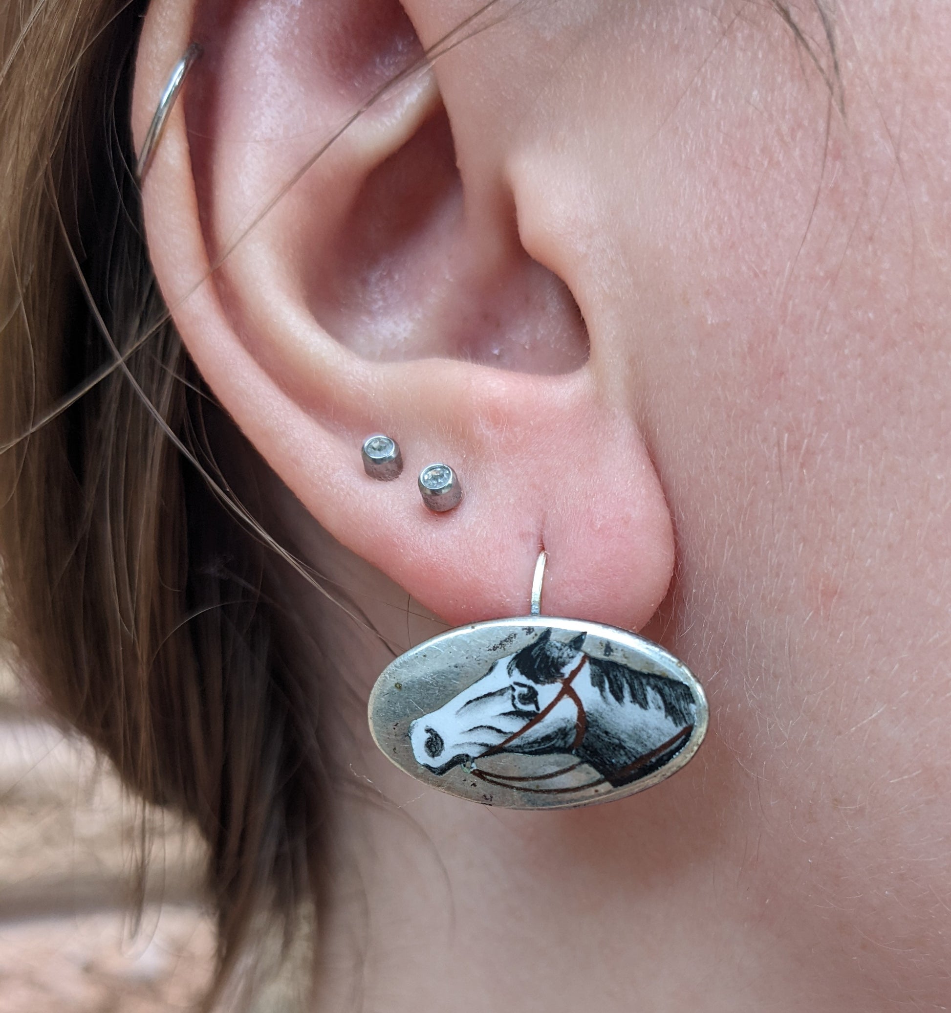 Sterling enamel horse earrings