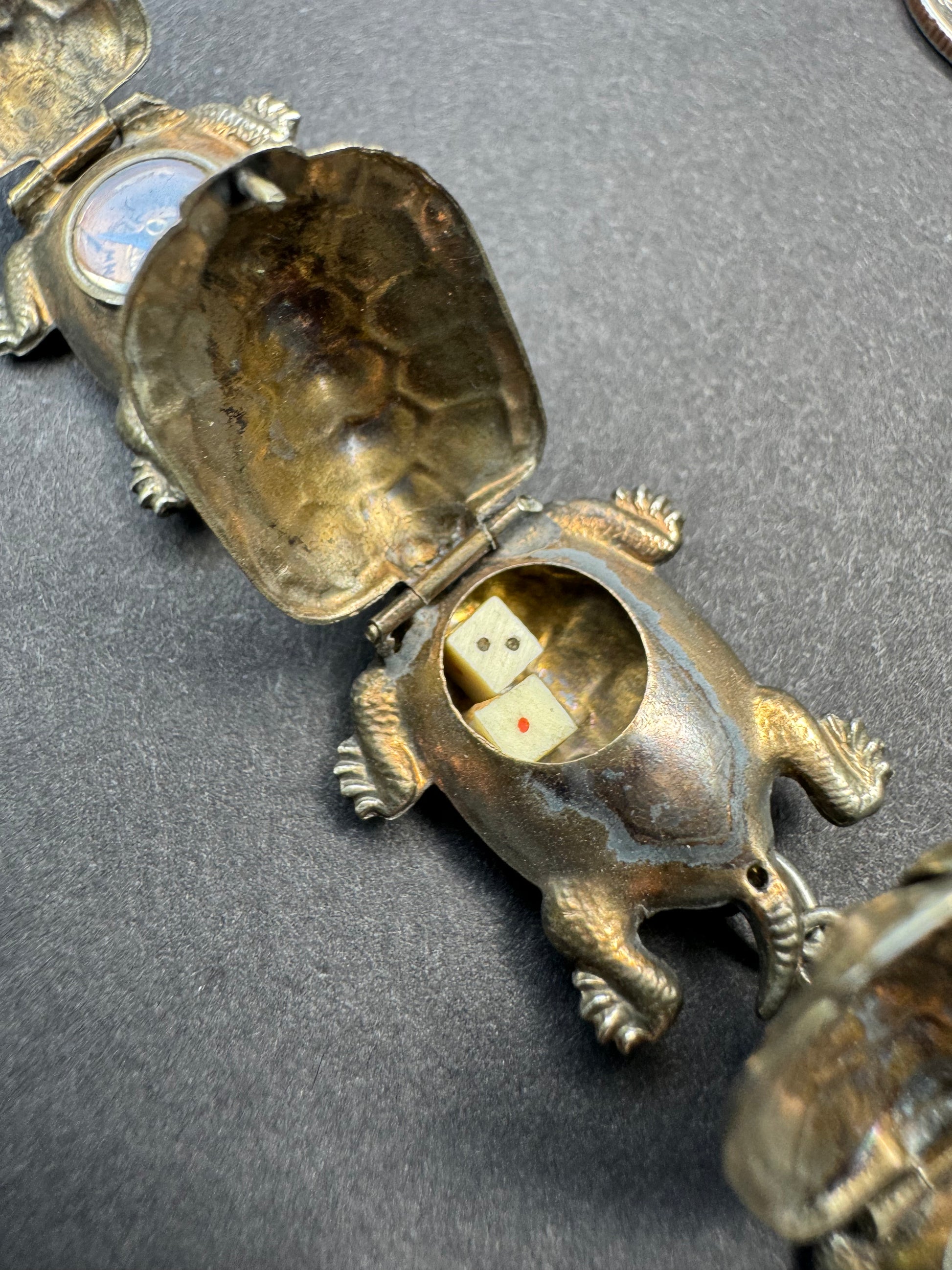 Sterling Japanese Turtle Watch Fob with Compass, Mini Dice and Locket