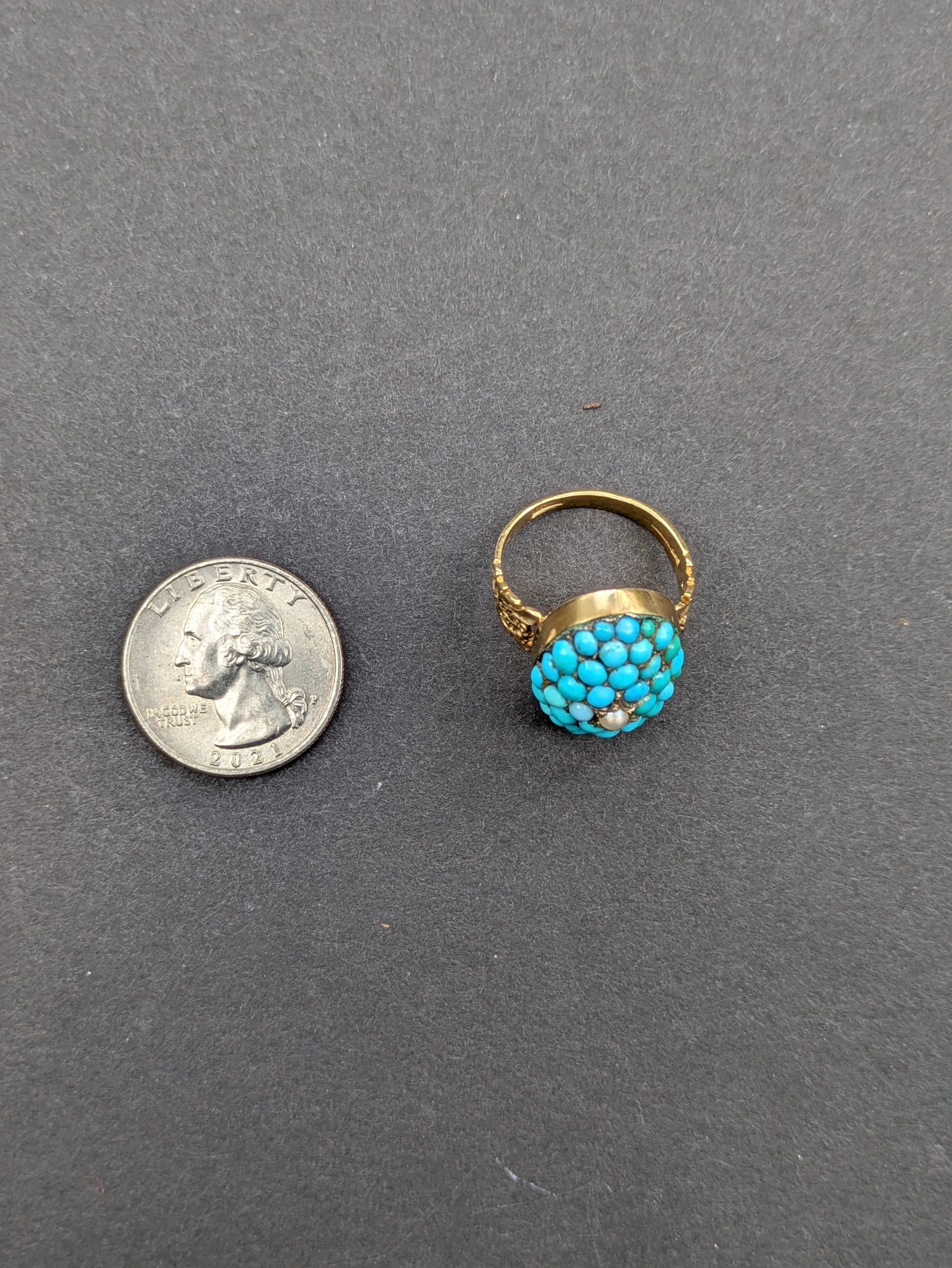 Victorian 18k Turquoise and Pearl Ring