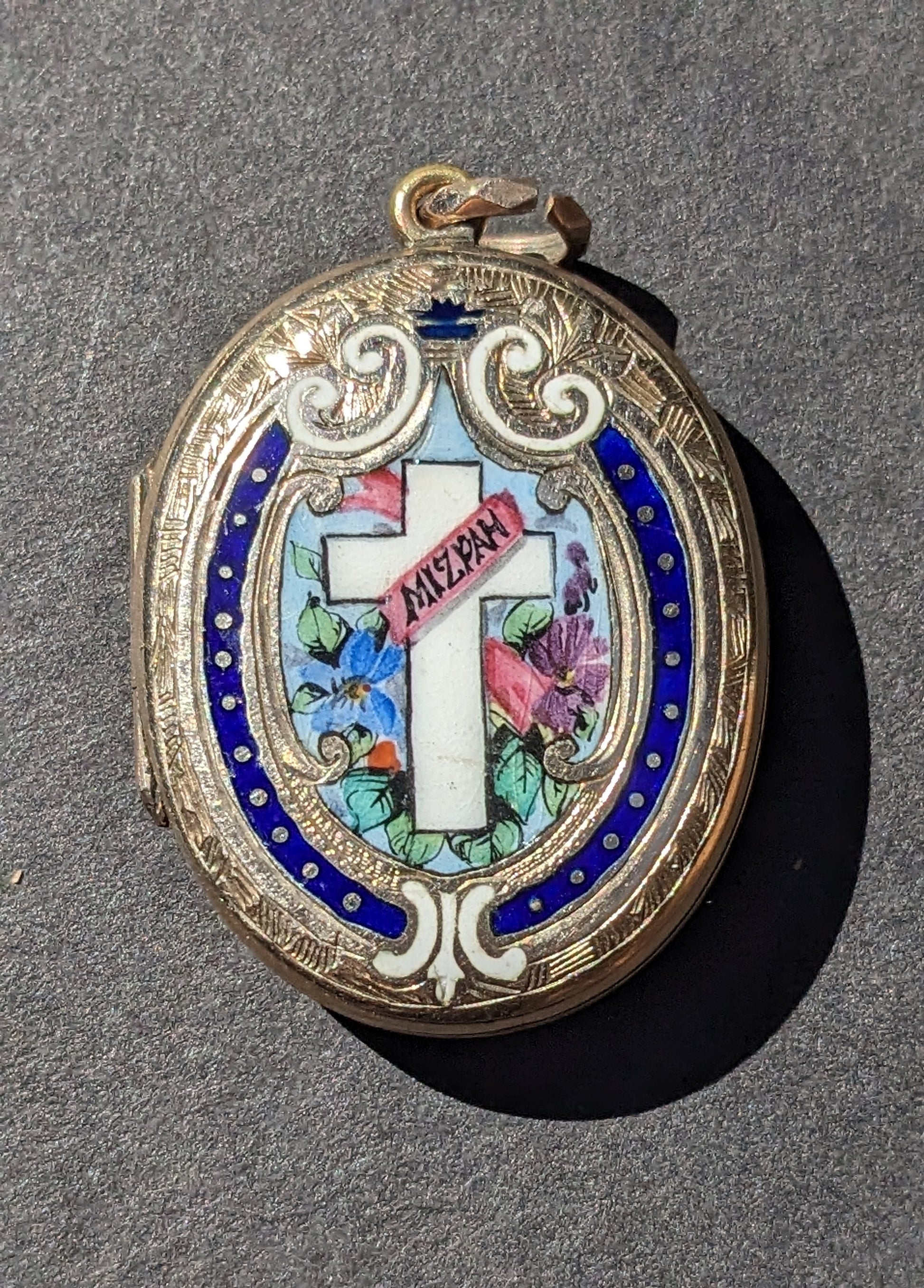 Victorian 9k Gold Enamel Cross and Floral Locket "MIZPAH"