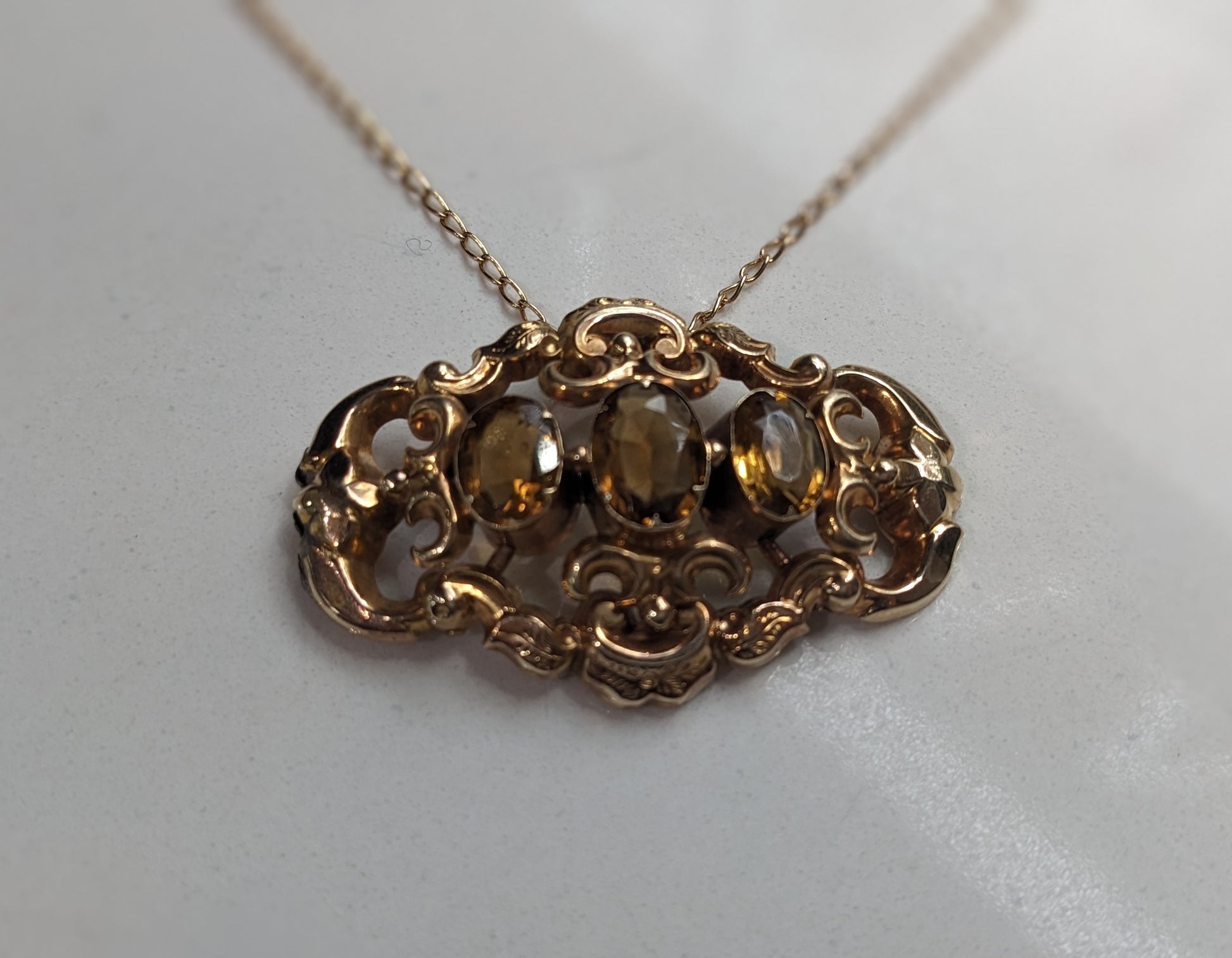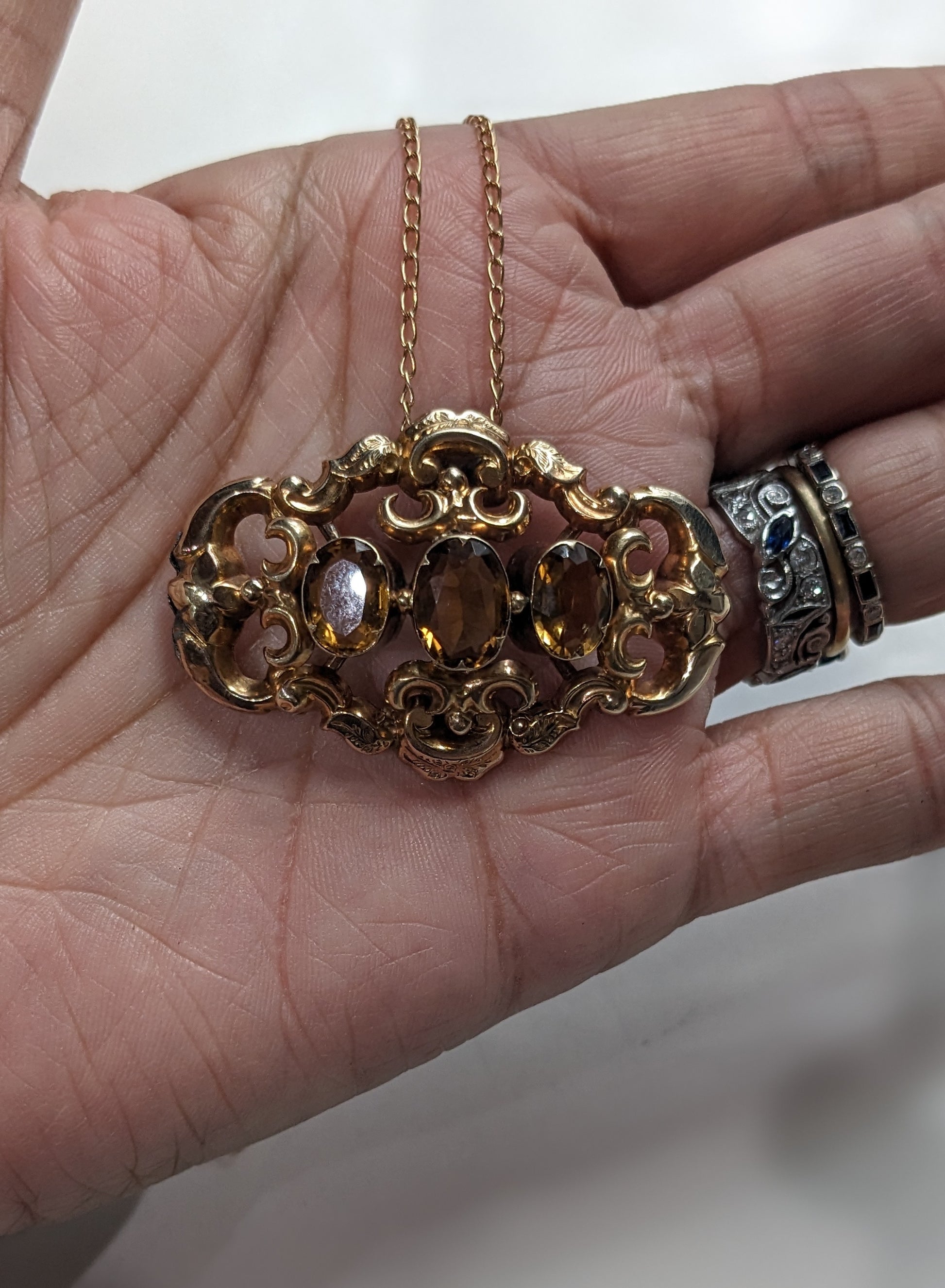 Victorian Conversion Gold and Citrine Pendant and Chain