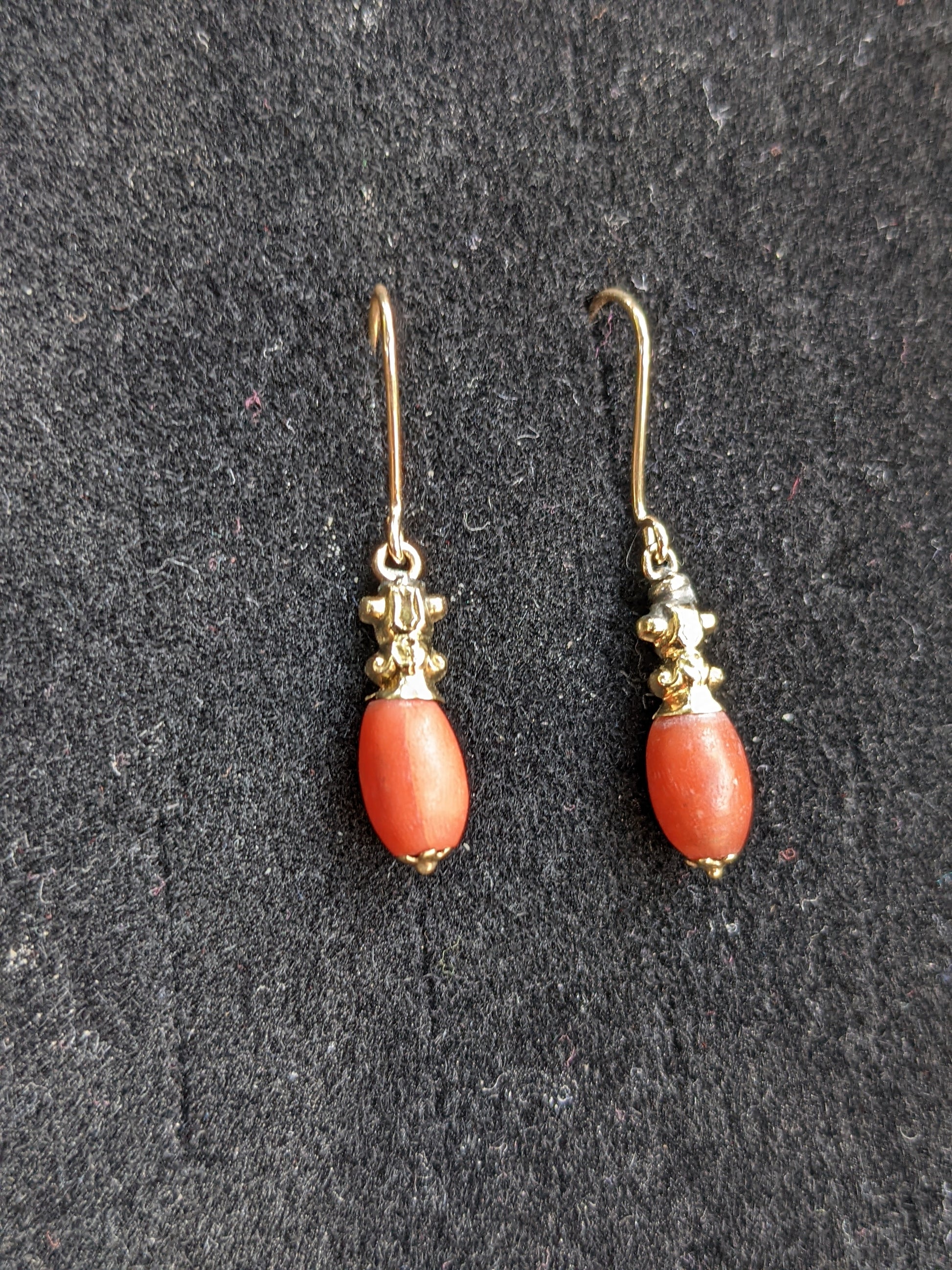 Victorian Coral Drop Earrings 18kt Wires Replaced 14kt