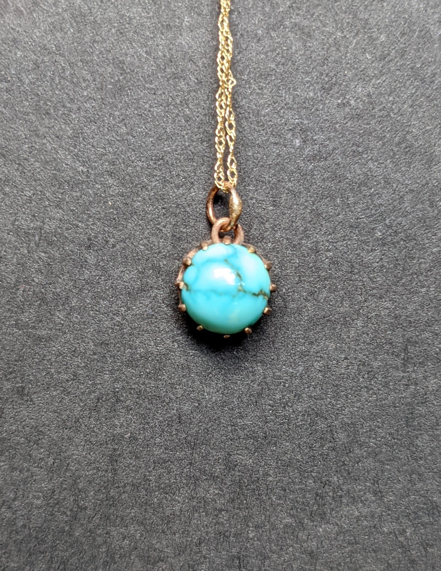 Victorian turquoise pendant in crown mounting on 14kt chain